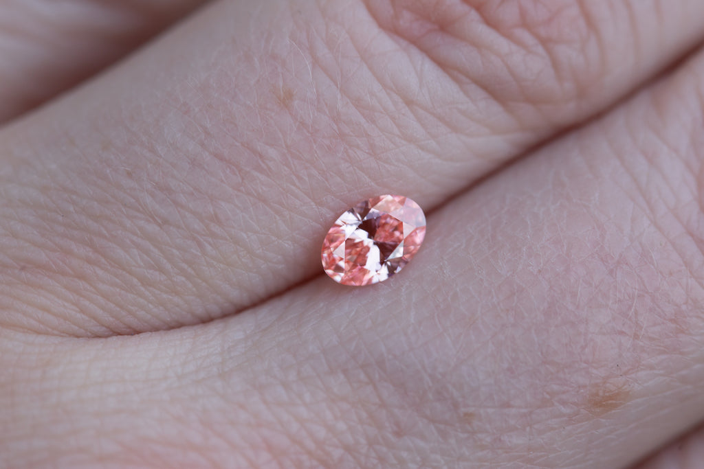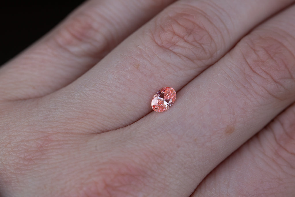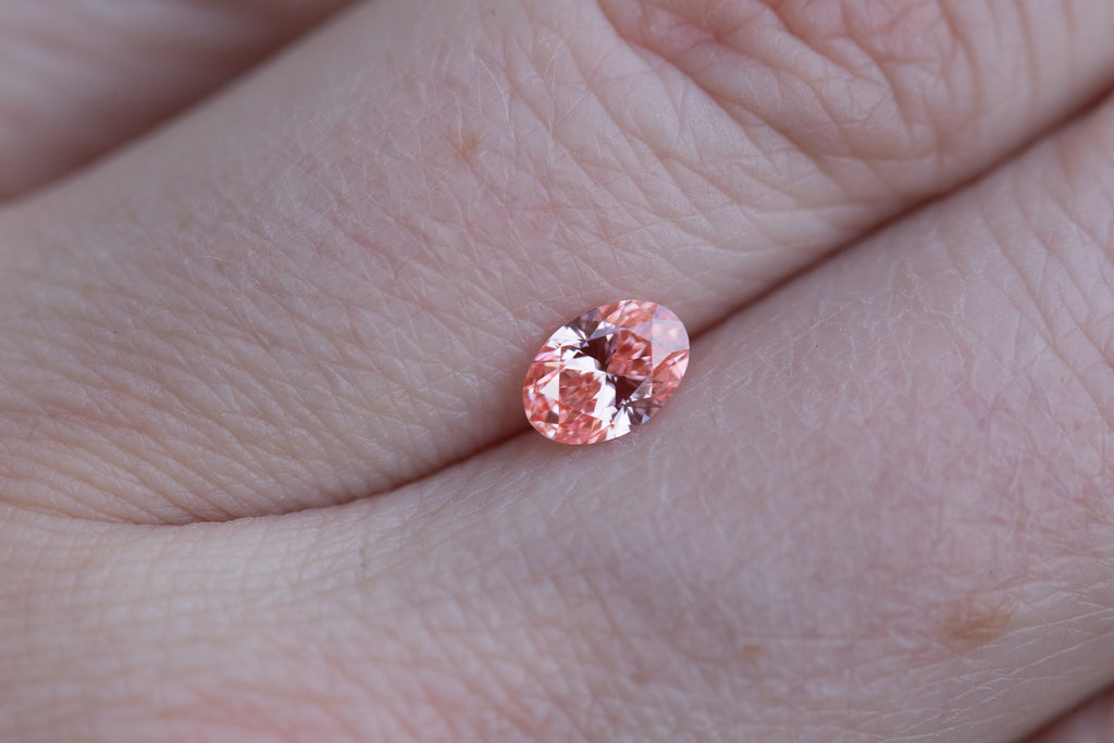 This incredible oval lab diamond is a vibrant fancy vivid pink with absolutely stunning sparkle!