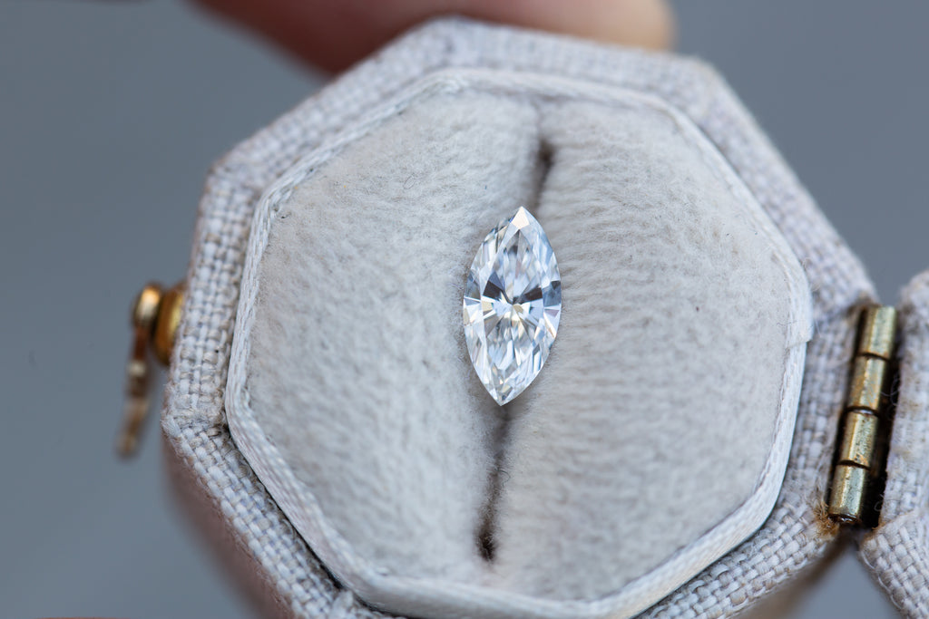 This beautiful marquise lab diamond is bright and full of gorgeous sparkle!