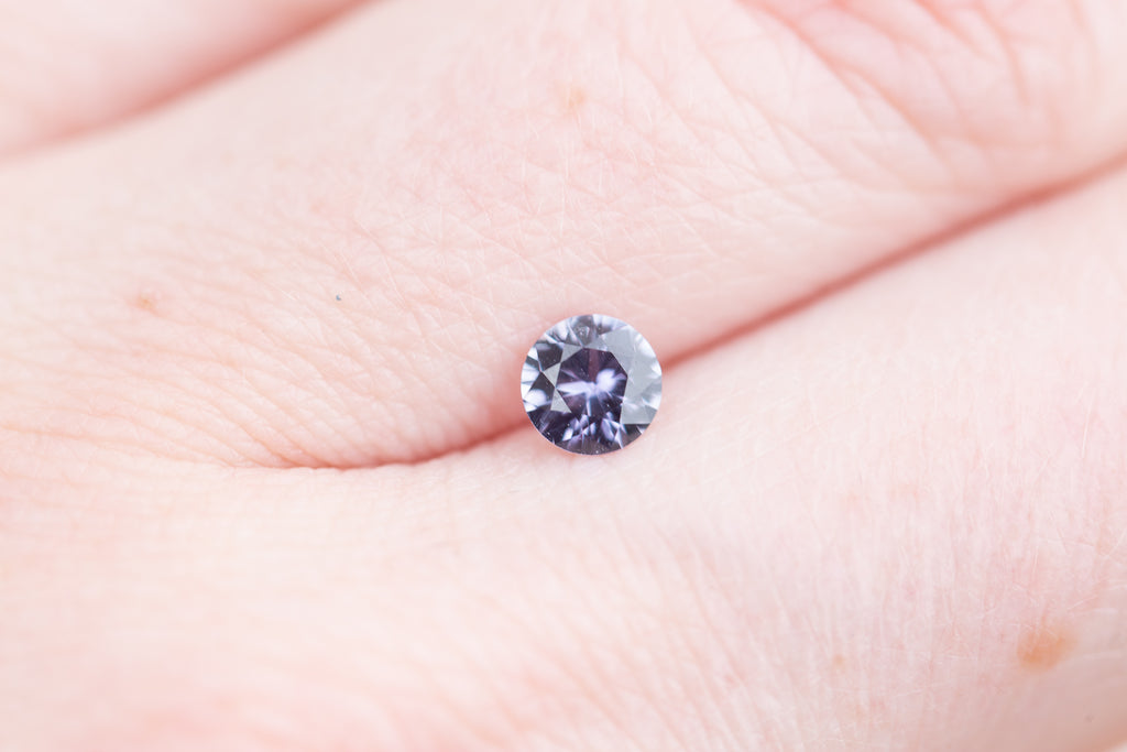 This lovely sapphire is the prettiest grey lavender/purple with tons of sparkle!