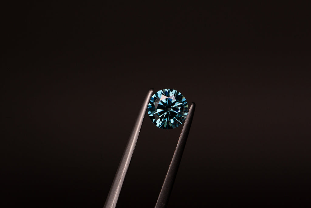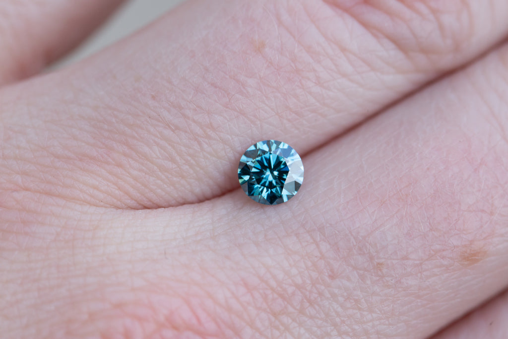 This striking round fancy vivid blue lab diamond has such vibrant coloring and incredible sparkle!