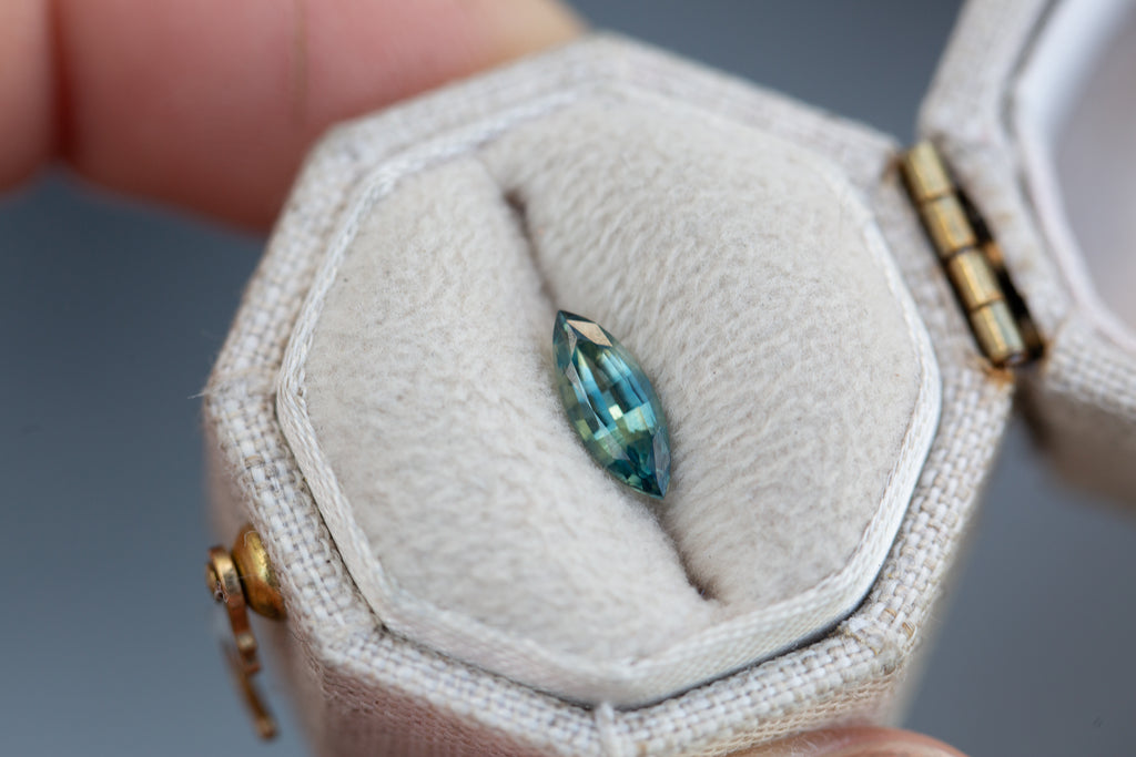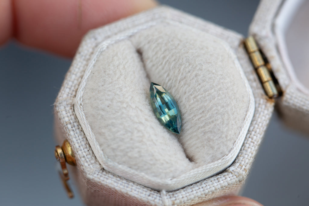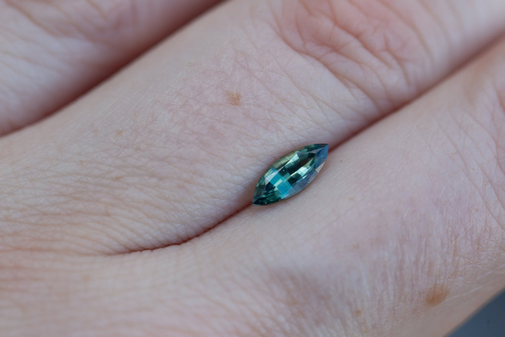 This beautiful marquise blue teal sapphire has the loveliest coloring and sparkle!