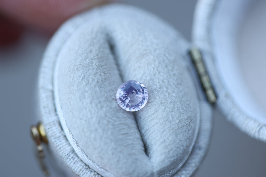 The absolute prettiest slightly opalescent round sapphire has the most beautiful pink lavender coloring! Just a magical stone!