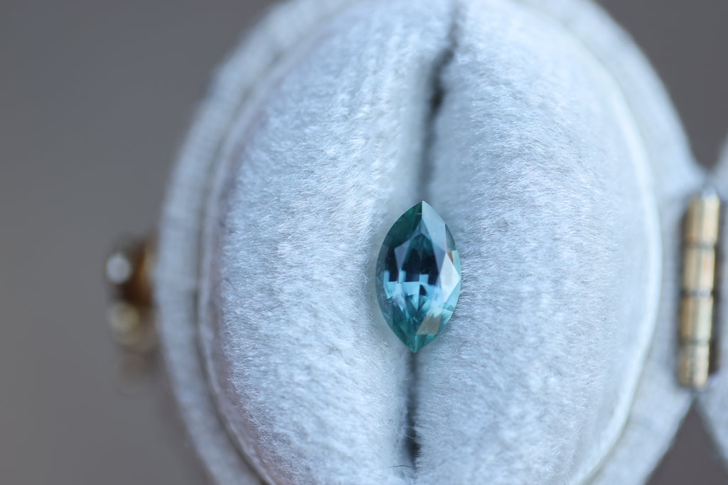 This gorgeous marquise sapphire has the prettiest teal blue coloring!