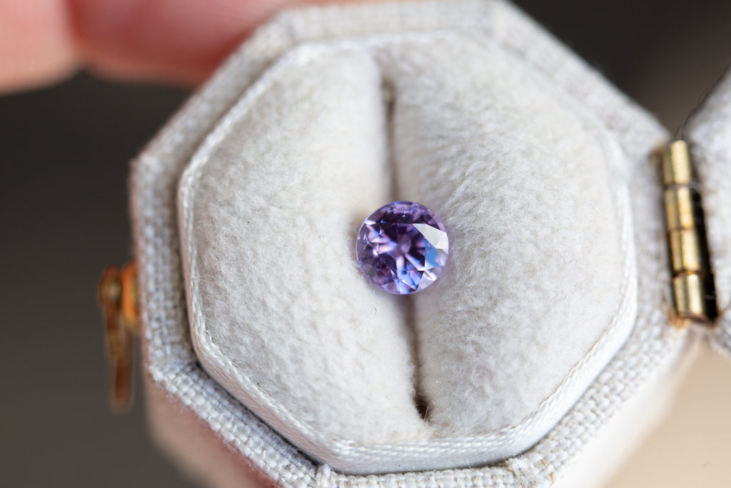 This beautiful round sapphire has gorgeous purple coloring and lots of sparkle!