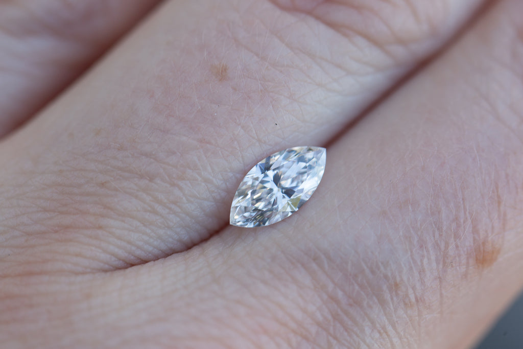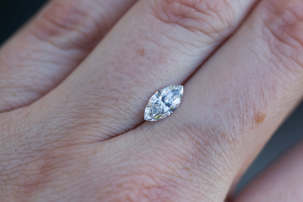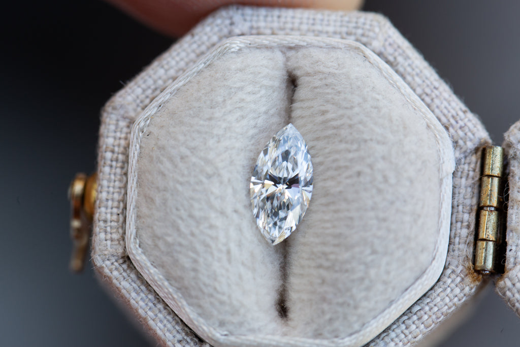 This stunning sparkly marquise lab diamond is a bright D color and just an absolute beauty!