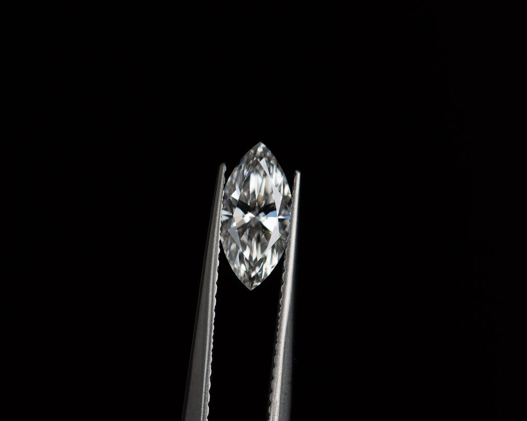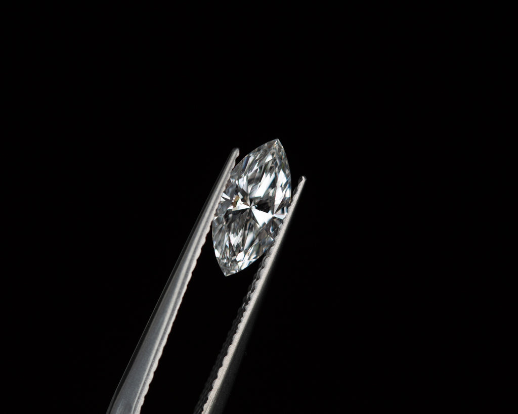 This beauty is a stunning marquise lab diamond full of sparkle!