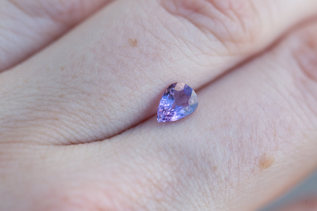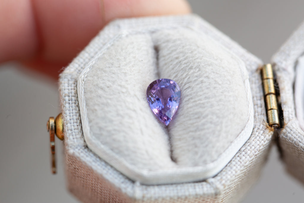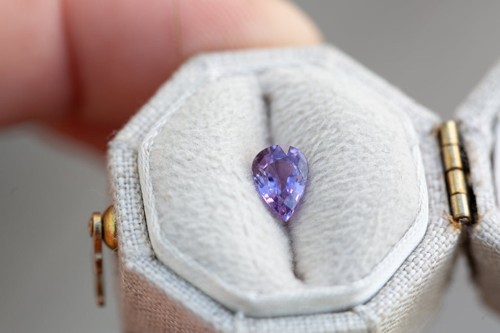 This gorgeous pear purple sapphire has the most beautiful coloring and sparkle!