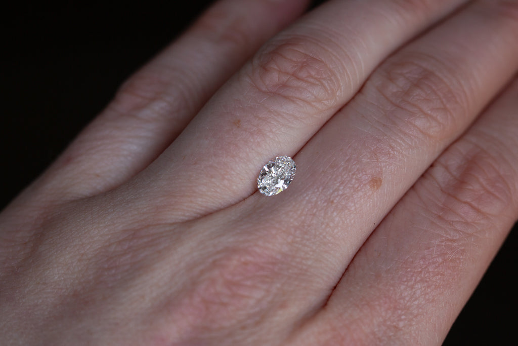 This gorgeous bright D color oval lab diamond has such incredible sparkle!