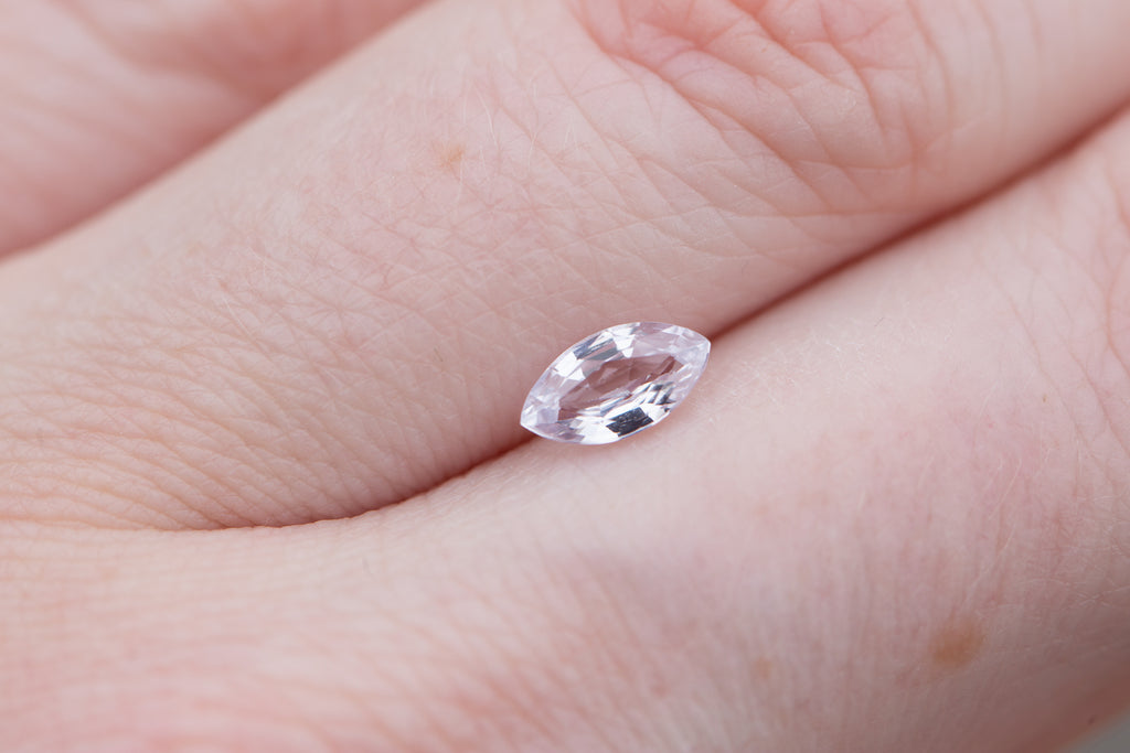 This beautiful icy white sapphire has a tiny hint of light blue but is mostly a clear/white stone with lots of sparkle!