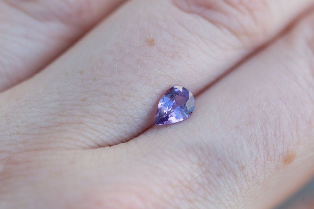 The prettiest pear purple sapphire full of such lovely coloring and sparkle!