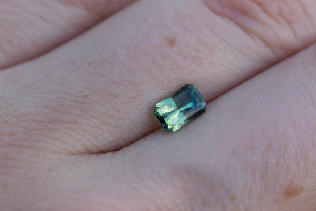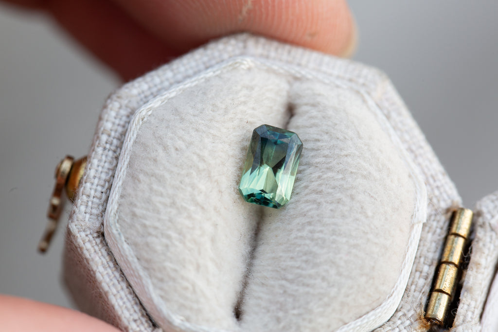This beauty is the prettiest mix of green teal and blue is a gorgeous emerald cut!