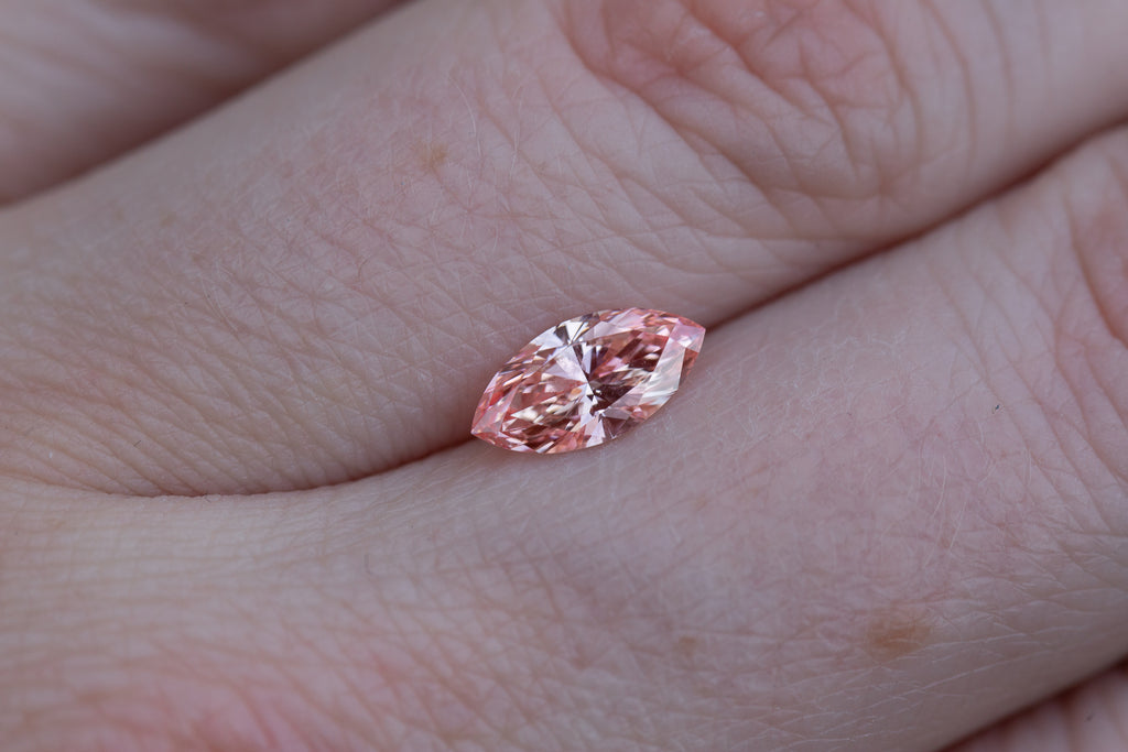 This striking marquise lab diamond is a fancy intense pink with the most stunning sparkle!