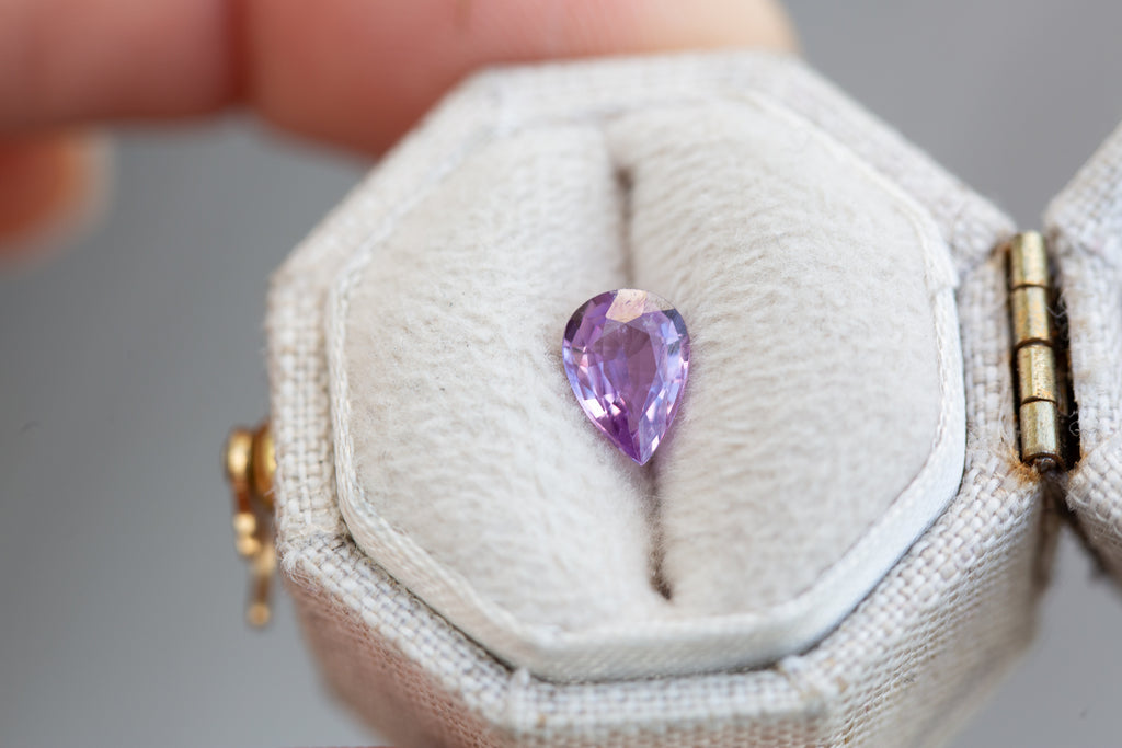 This lovely pear purple sapphire has the prettiest coloring and lots of sparkle!