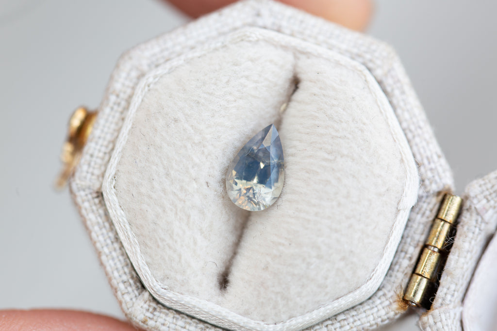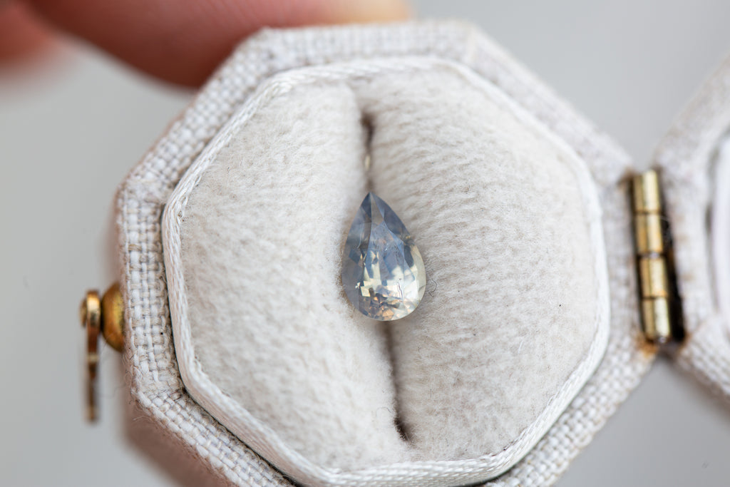 This gorgeous multi colored sapphire is an extremely unique color that is a grey/green sometimes with a little hint of purple and is slightly opalescent - it is just an absolute beauty!