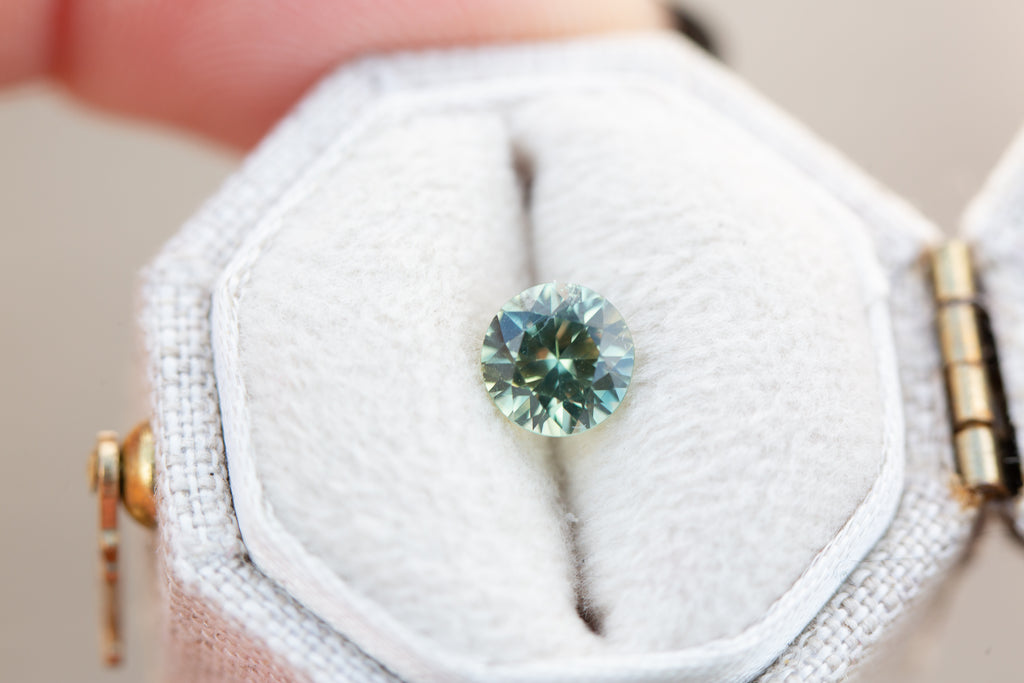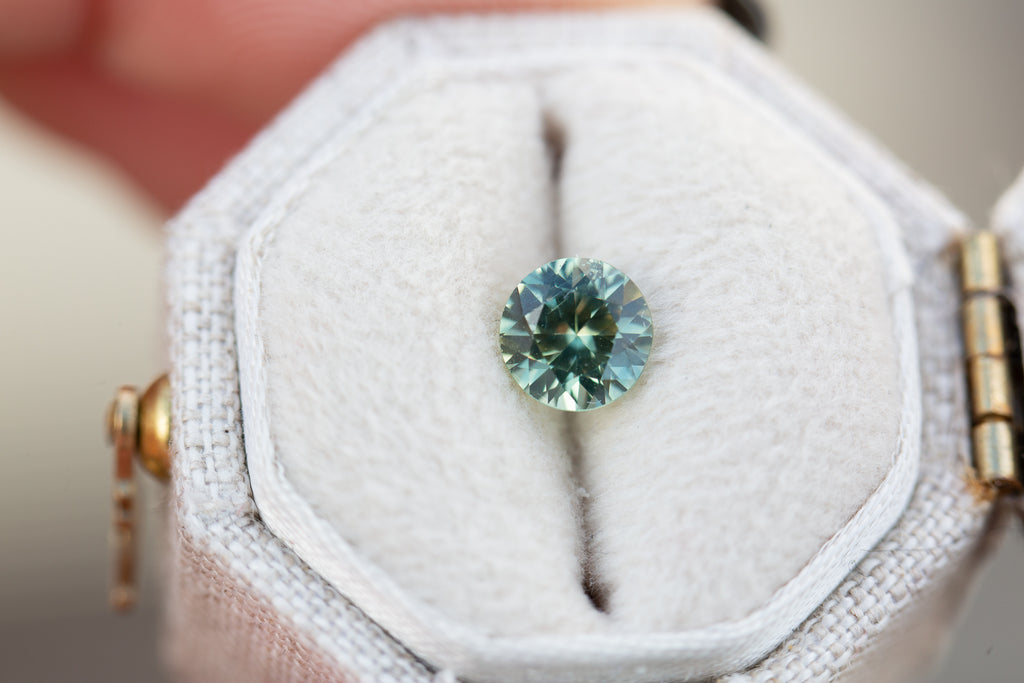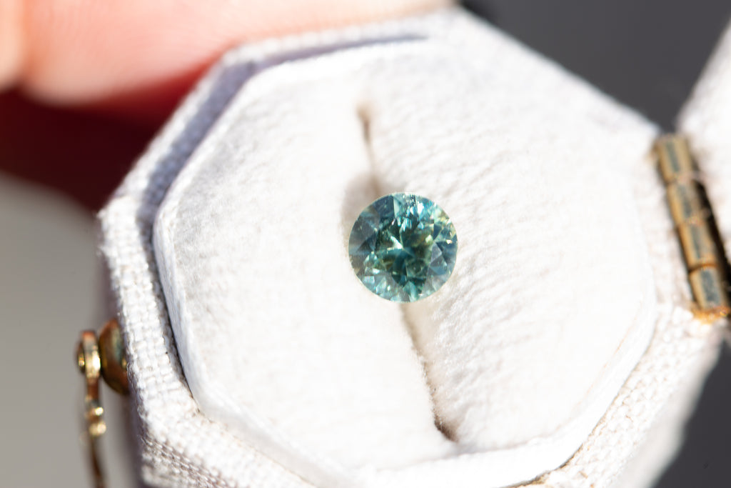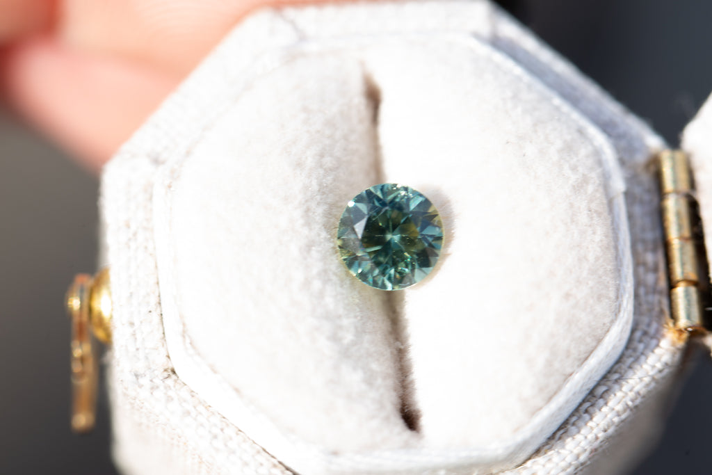 This beautiful round green teal sapphire has tons of facets for some gorgeous sparkle!