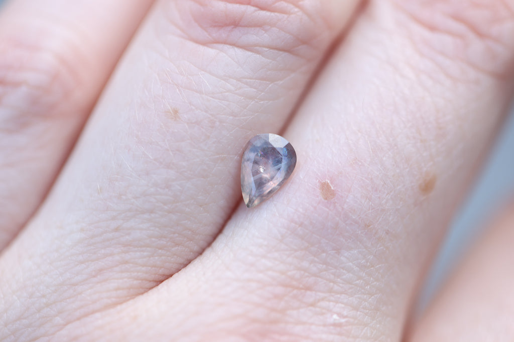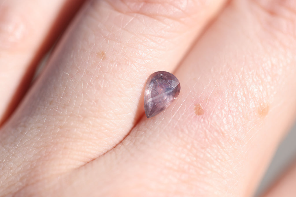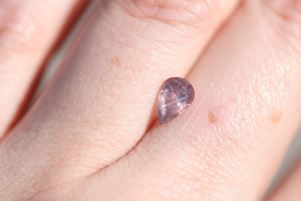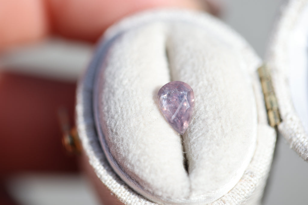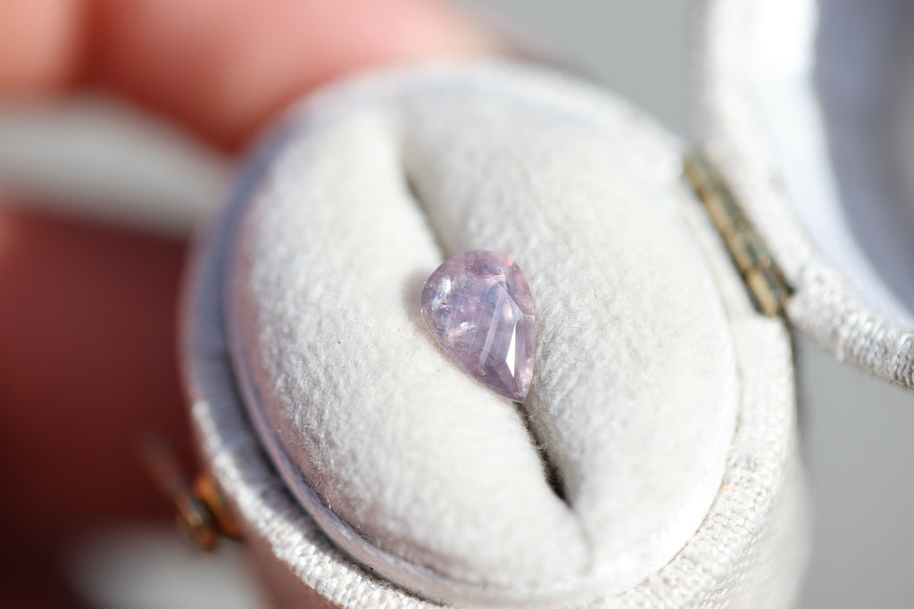 This gorgeous pear sapphire is so special! It has the loveliest pink/mauve coloring with tons of shimmery inclusions - just an absolute beauty!