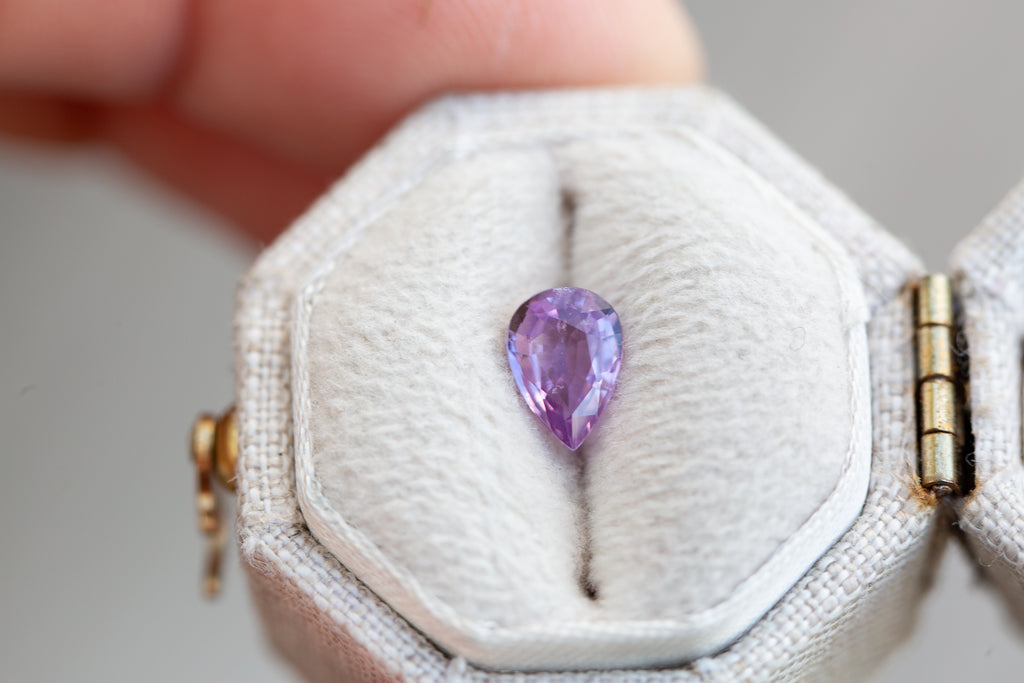 The prettiest pear purple sapphire! Such beautiful coloring and sparkle!