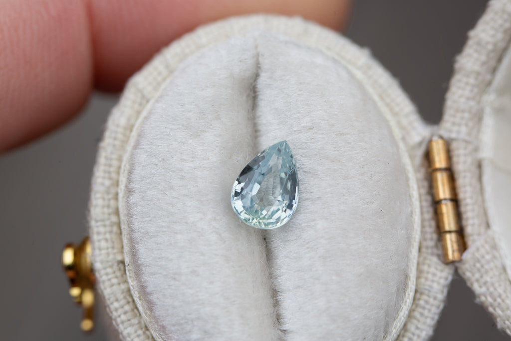 This icy beauty is just the prettiest light pastel blue teal color with some gorgeous sparkle!