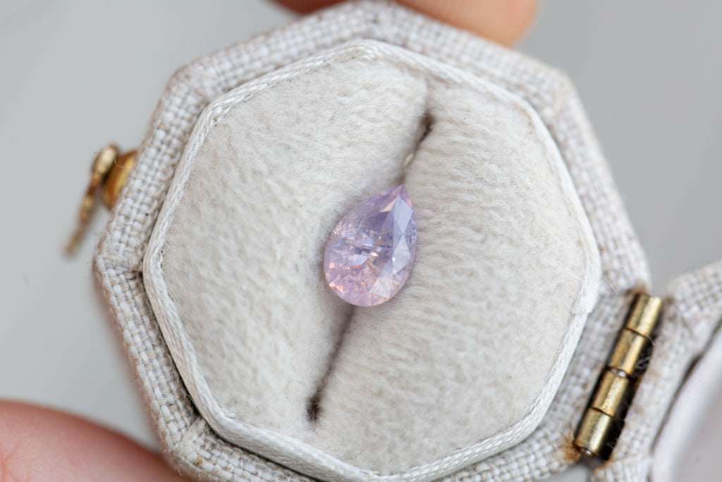 This absolutely lovely opalescent pear sapphire is the prettiest pink purple color and just such a beauty!