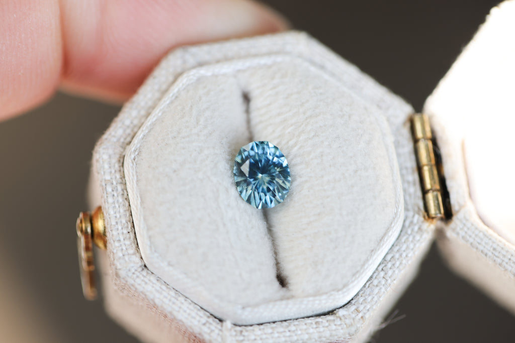 This absolute beauty has the prettiest blue teal coloring and such incredible faceting - a gorgeous sapphire!