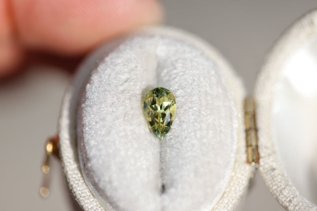 This brilliant stone sparkles in the most perfect yellow-green color!