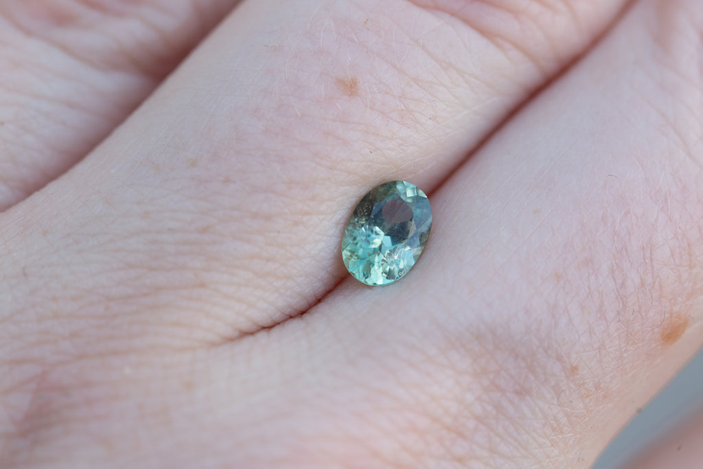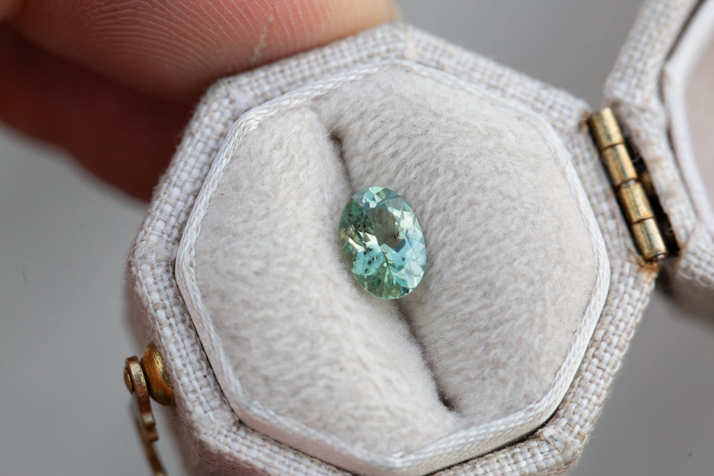 This gorgeous oval teal sapphire has such pretty coloring and lots of beautiful sparkle!