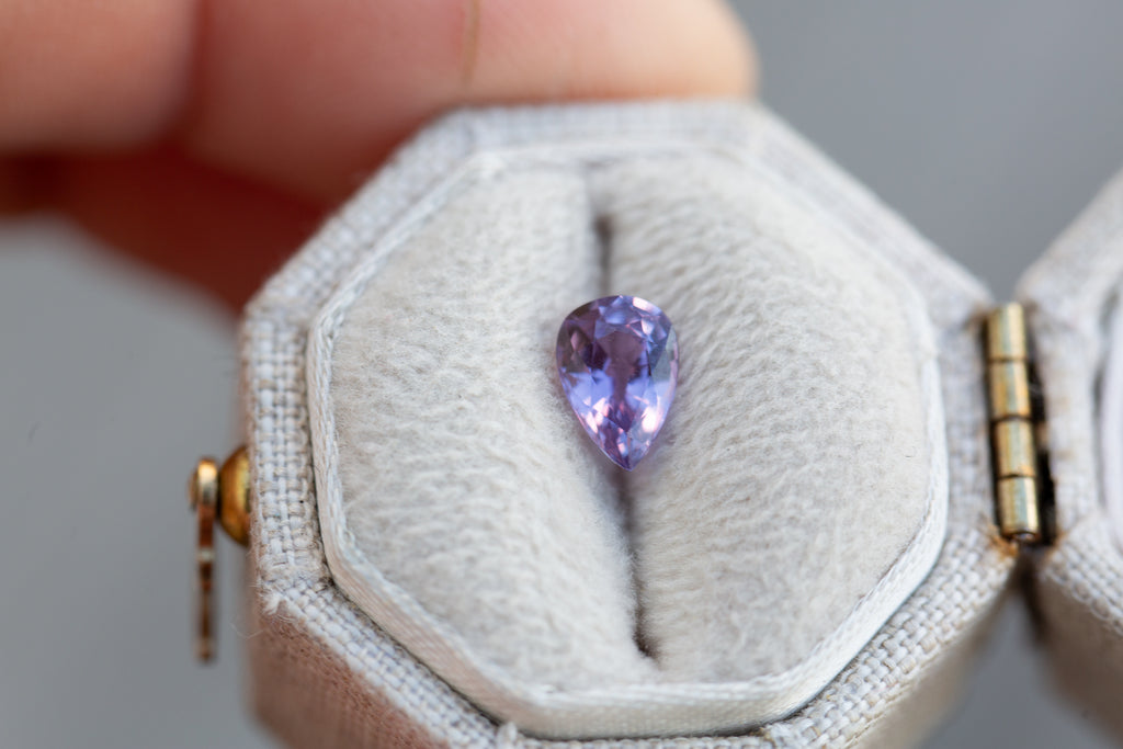 This gorgeous pear sapphire is such a beautiful purple with the loveliest sparkle!