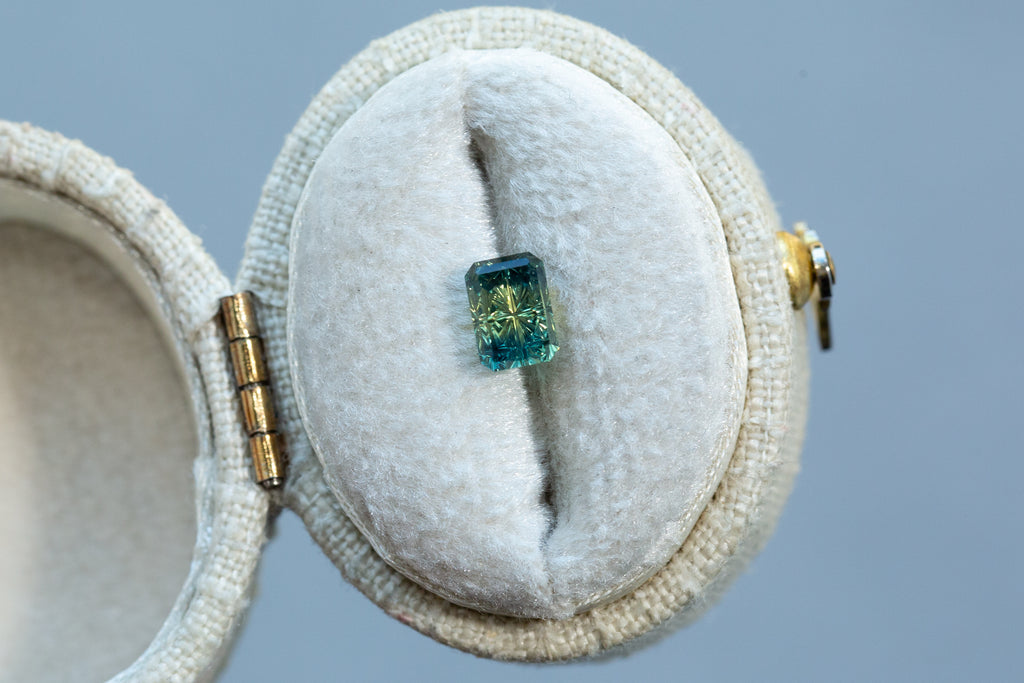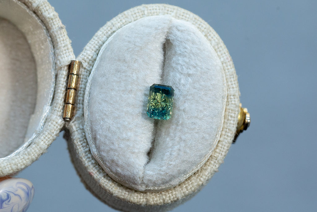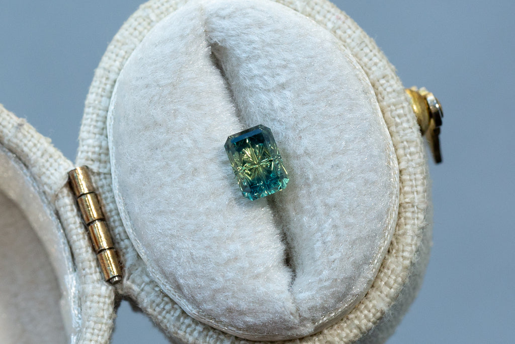 1.00ct Rectangle Green Blue Yellow Parti Sapphire - Starbrite Cut by John Dyer