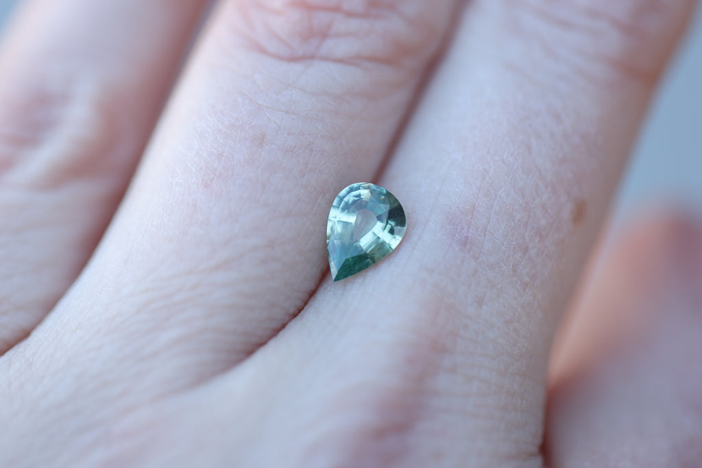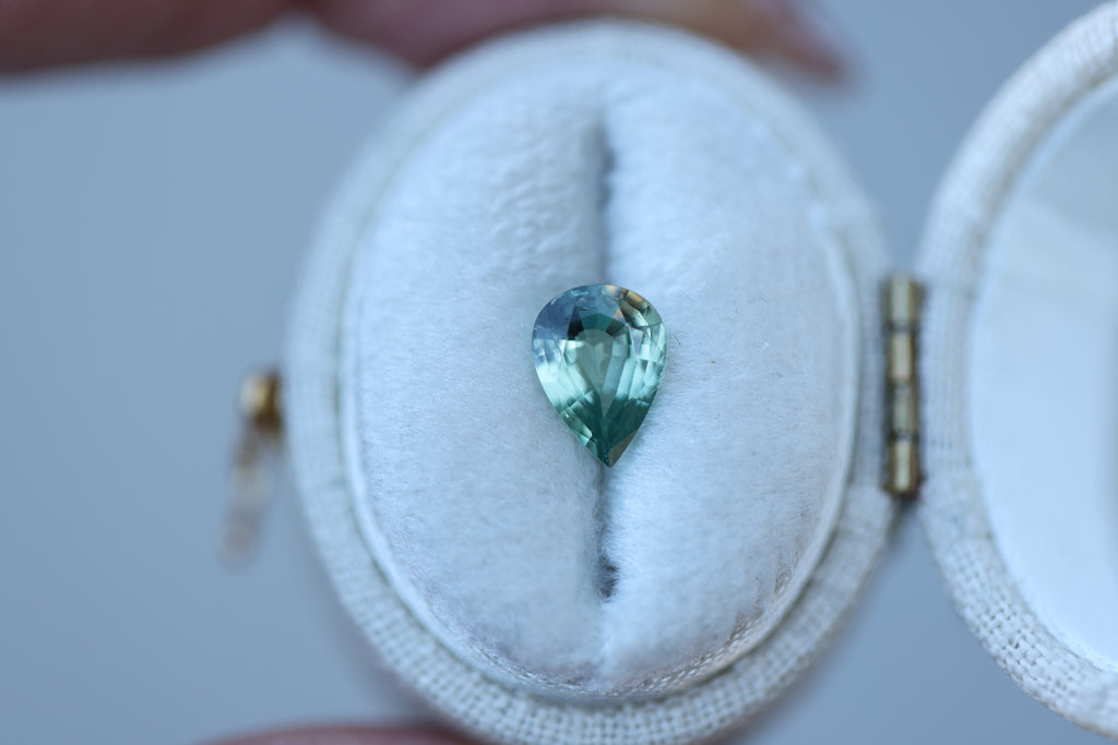 This gorgeous pear green teal sapphire is just such a beauty perfect for a woodland fairy!