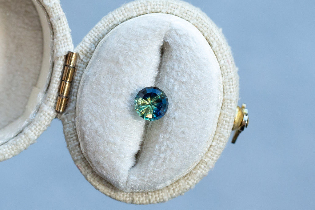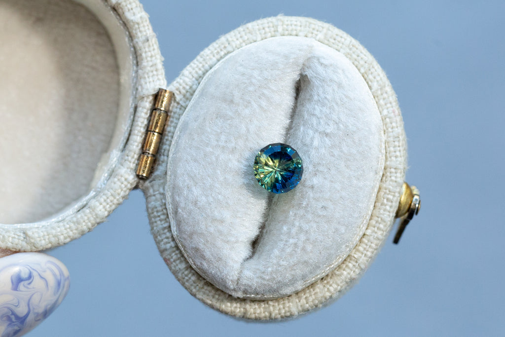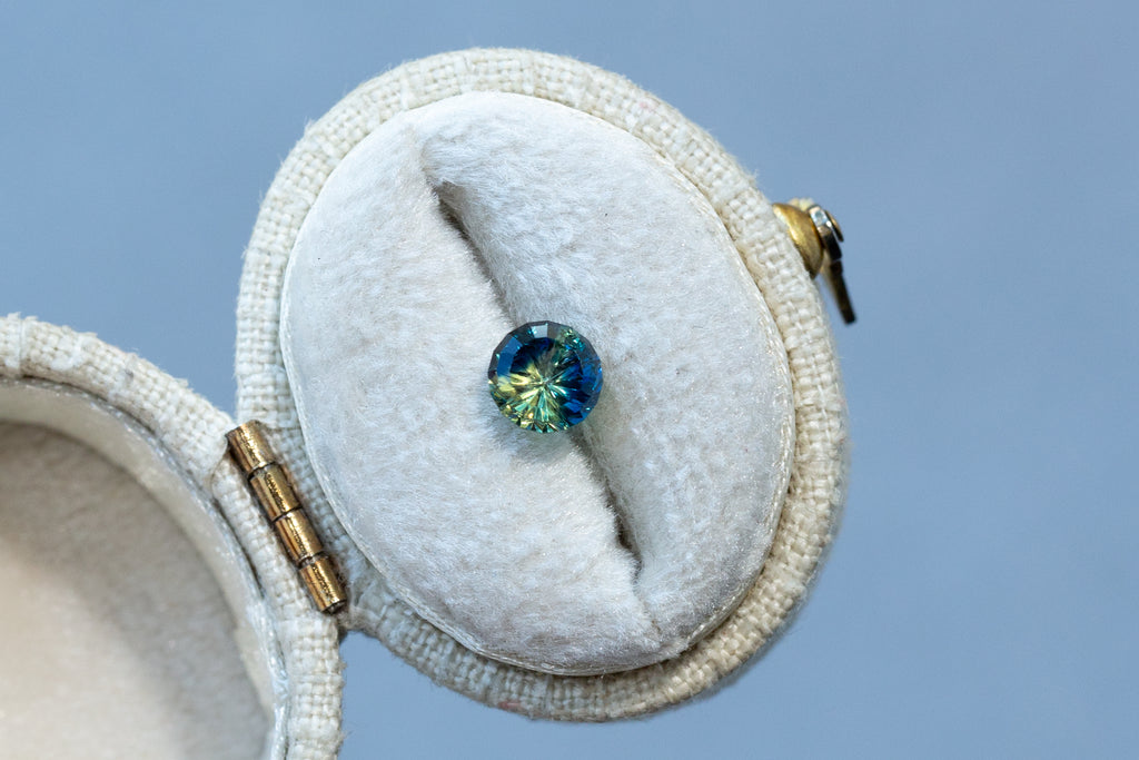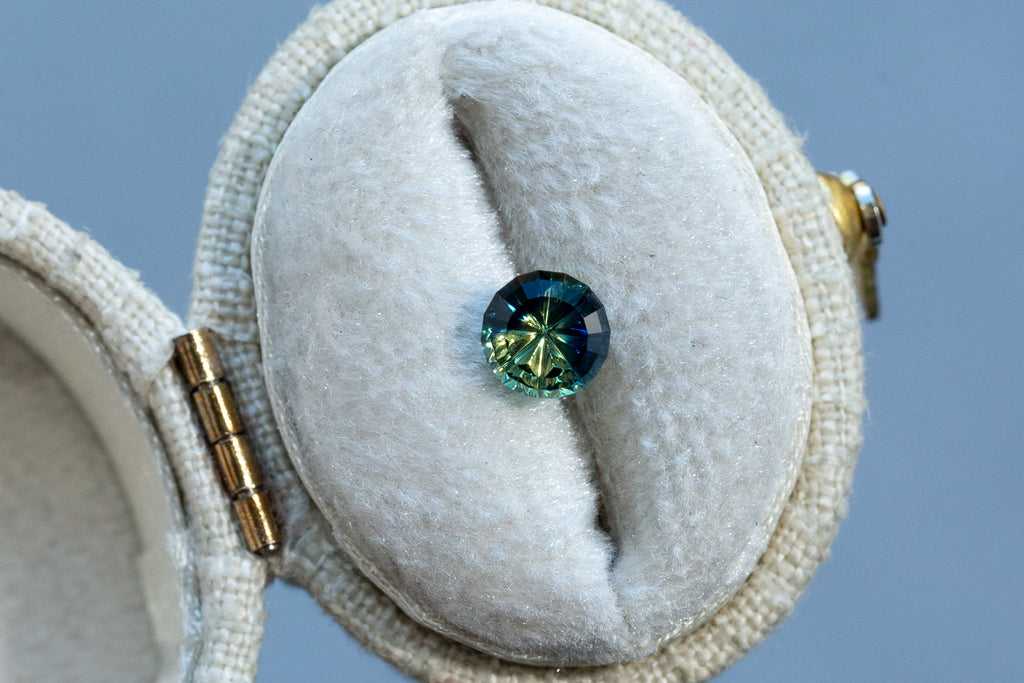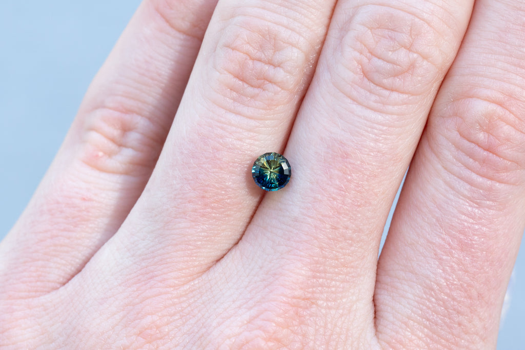 1.13ct Round Blue Green Yellow Parti Sapphire- Starbrite cut by John Dyer