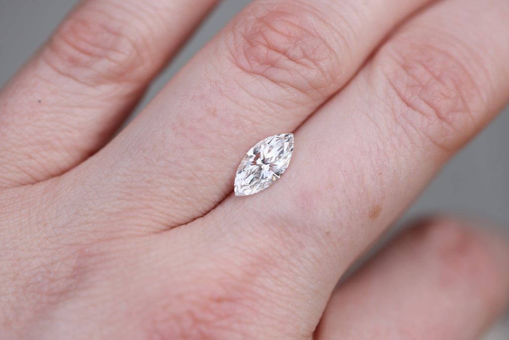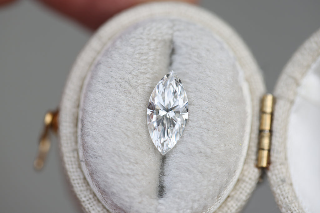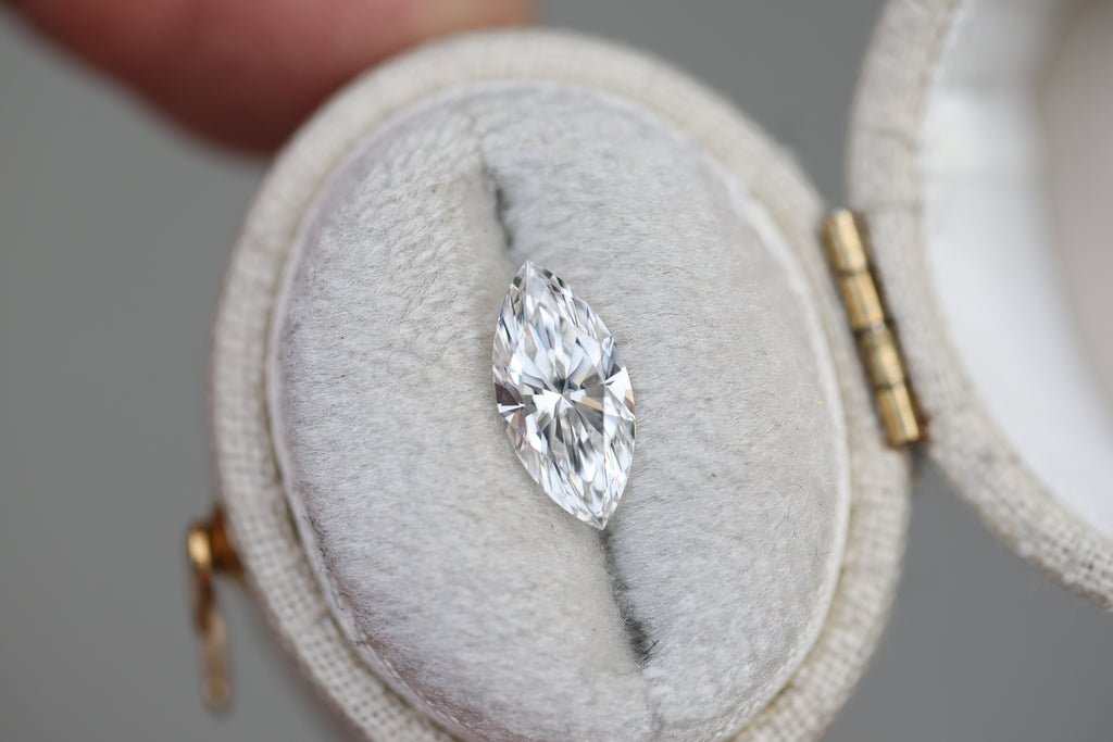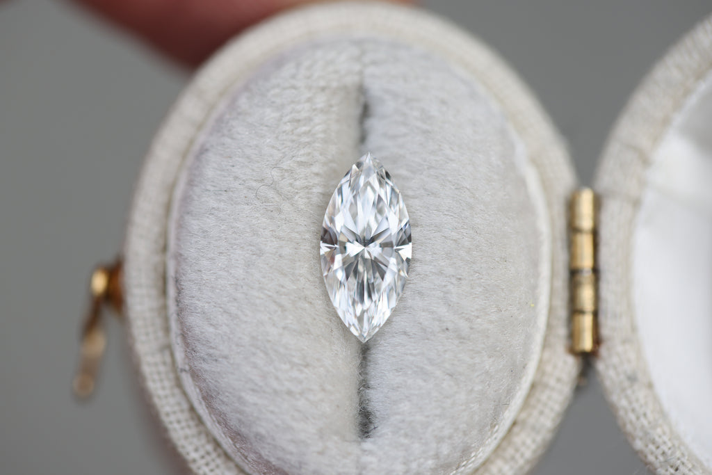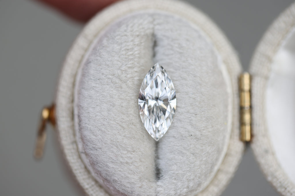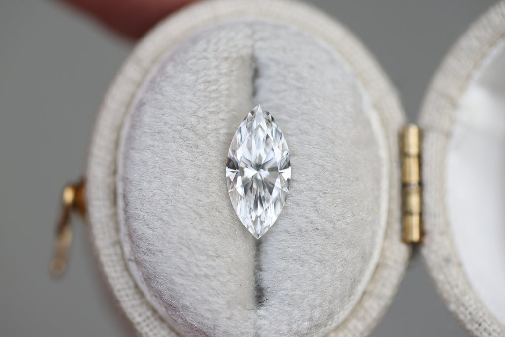 This absolute beauty is a marquise lab diamond with incredible sparkle!