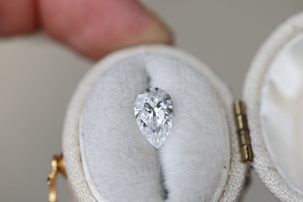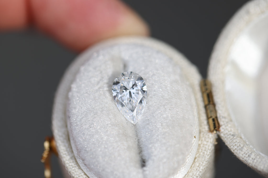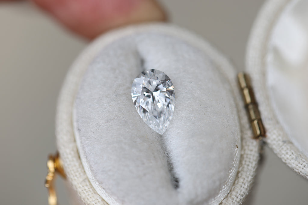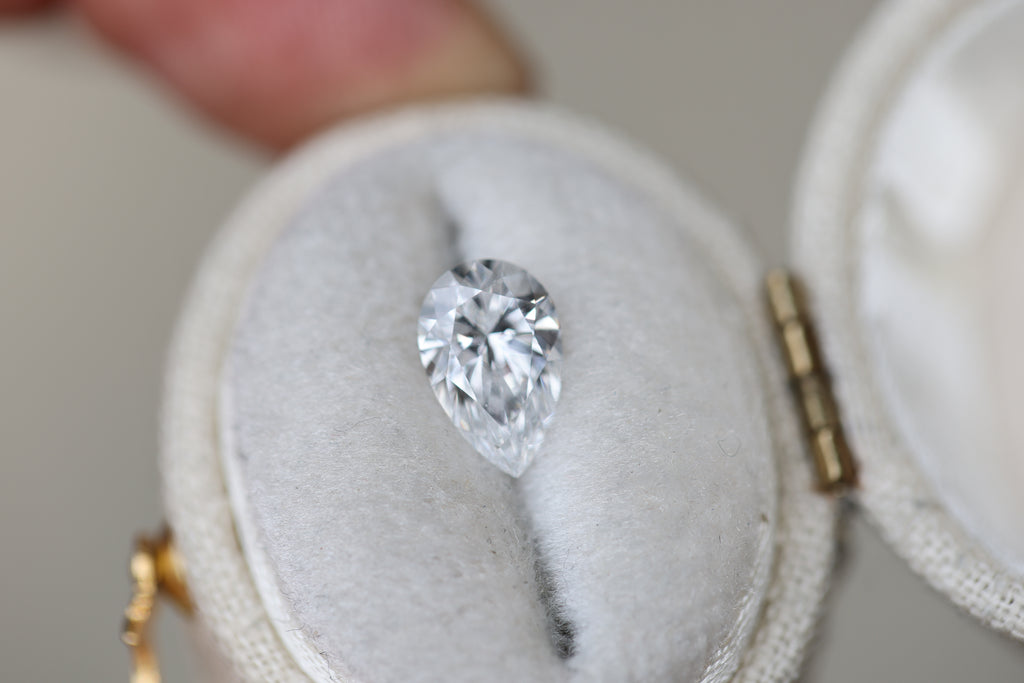 This beautiful pear lab diamond is a bright D color with gorgeous sparkle!