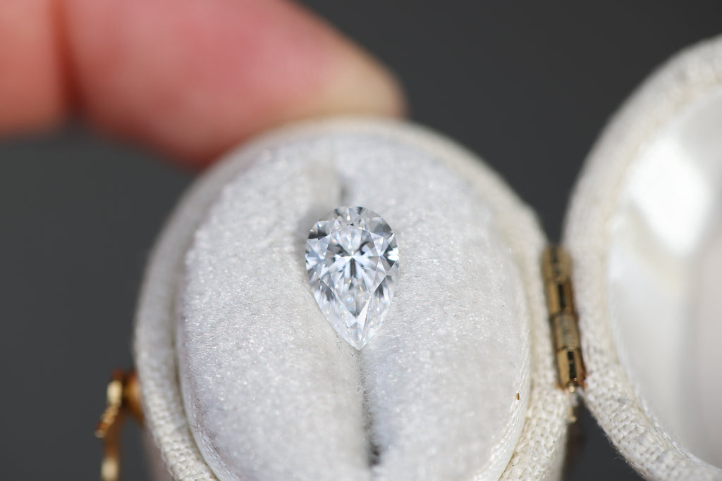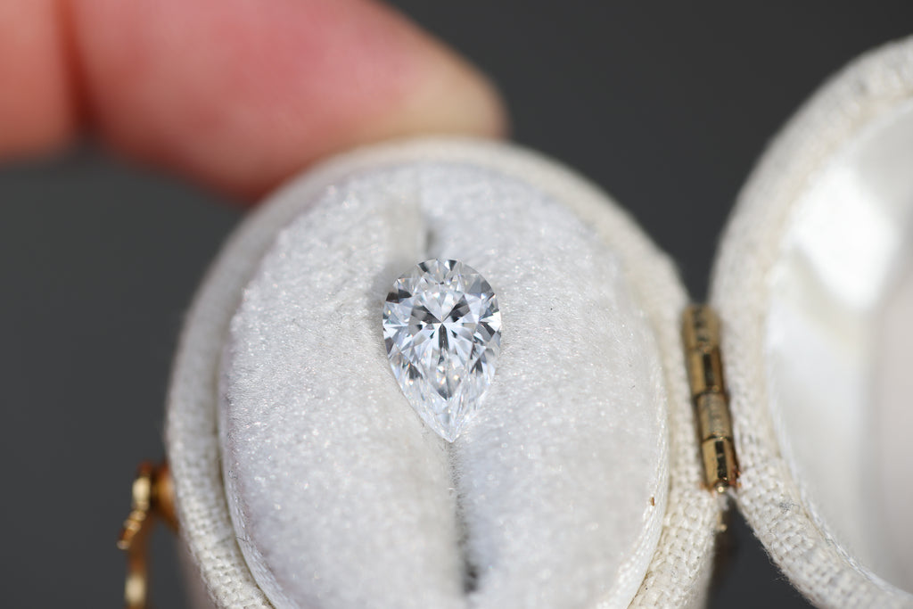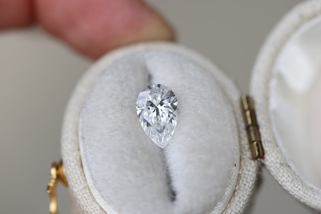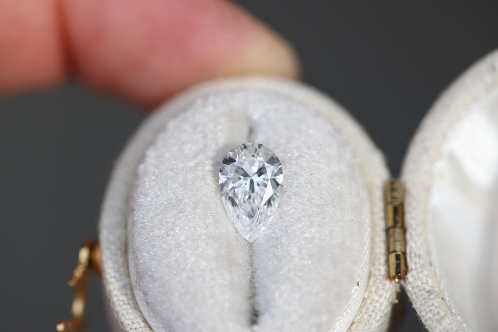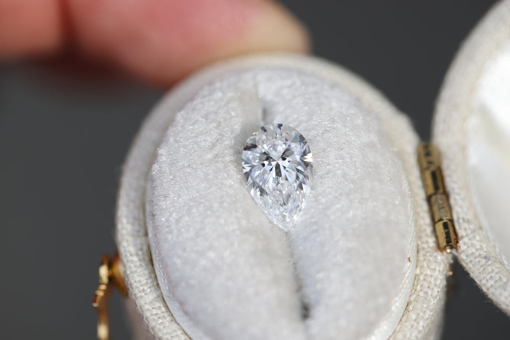 This beautiful pear lab diamond is a bright D color with gorgeous sparkle!