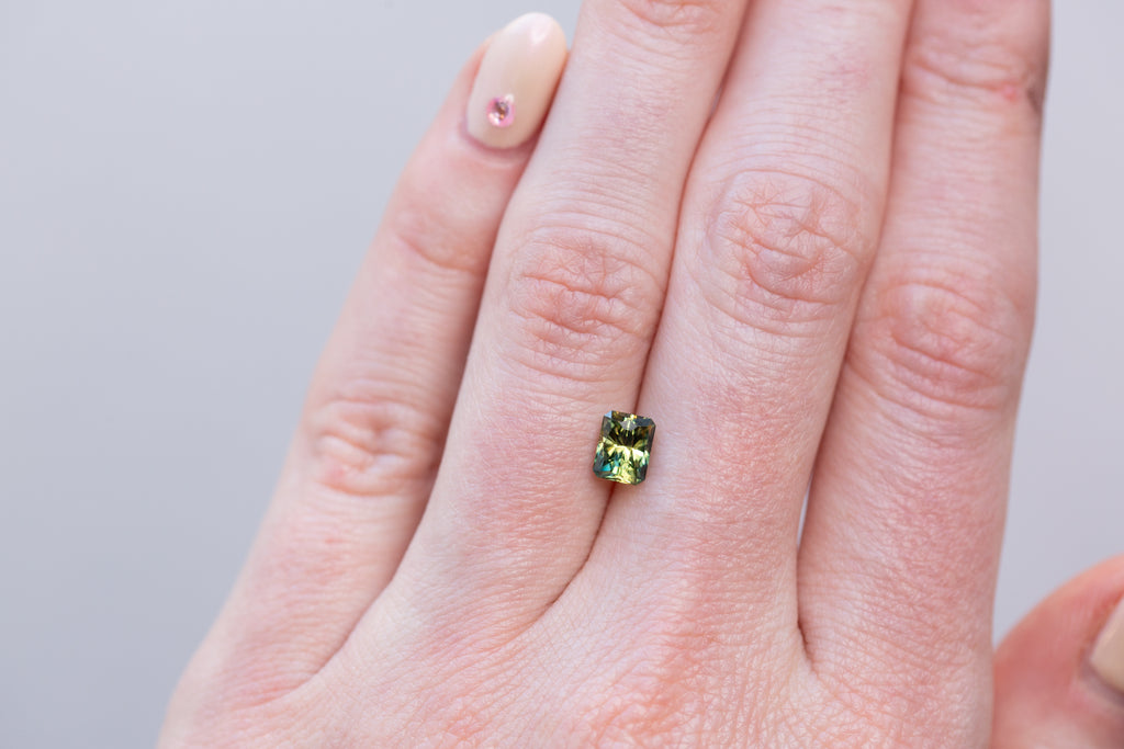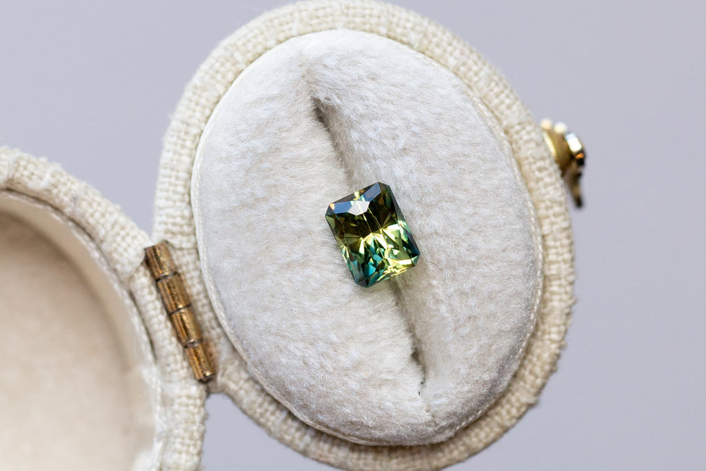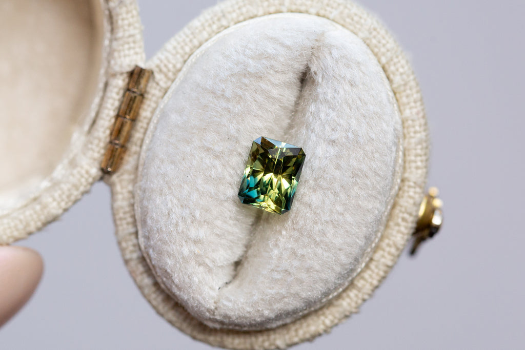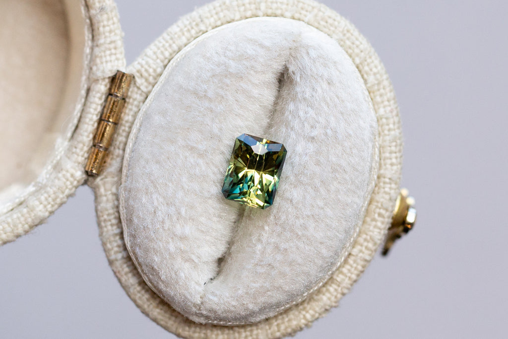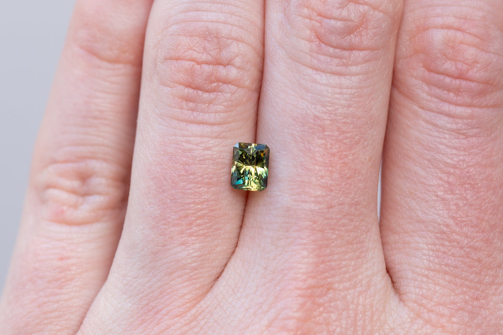 1.30ct Rectangle Yellow Teal Parti Sapphire- Regal Radiant cut by John Dyer
