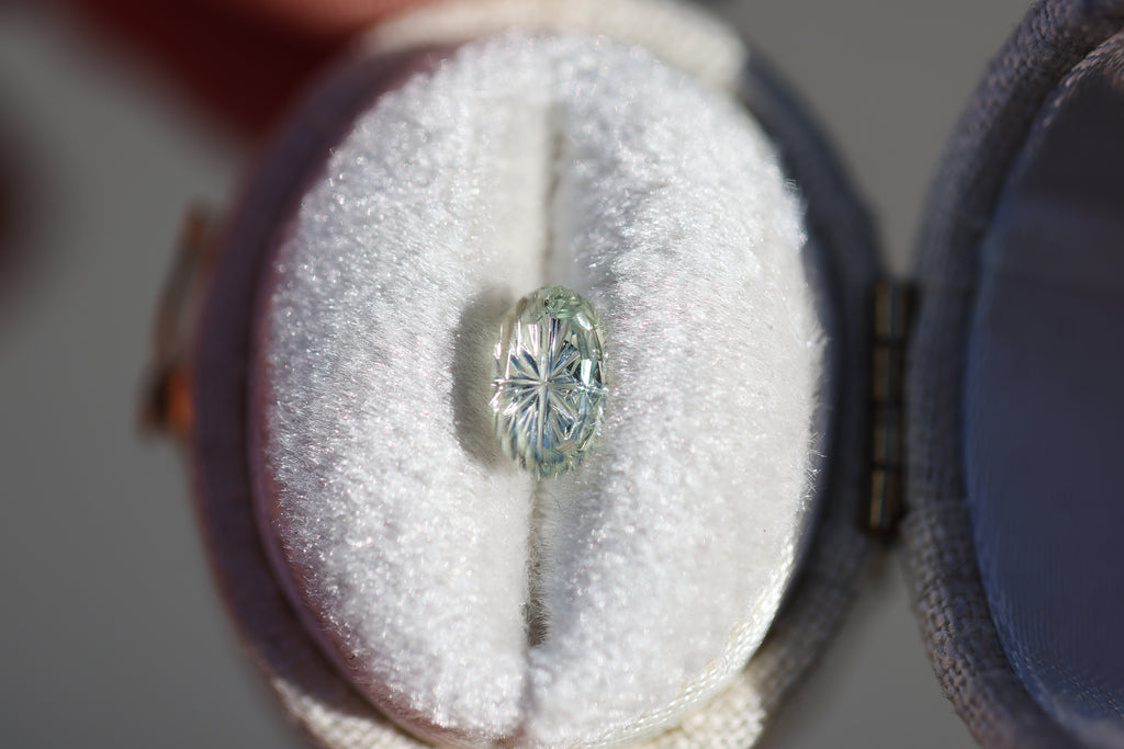 1.28ct oval light yellow green sapphire - Starbrite cut by John Dyer