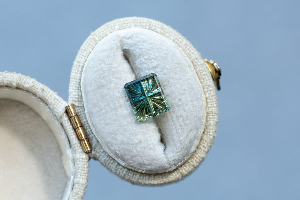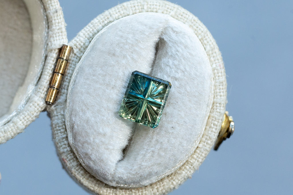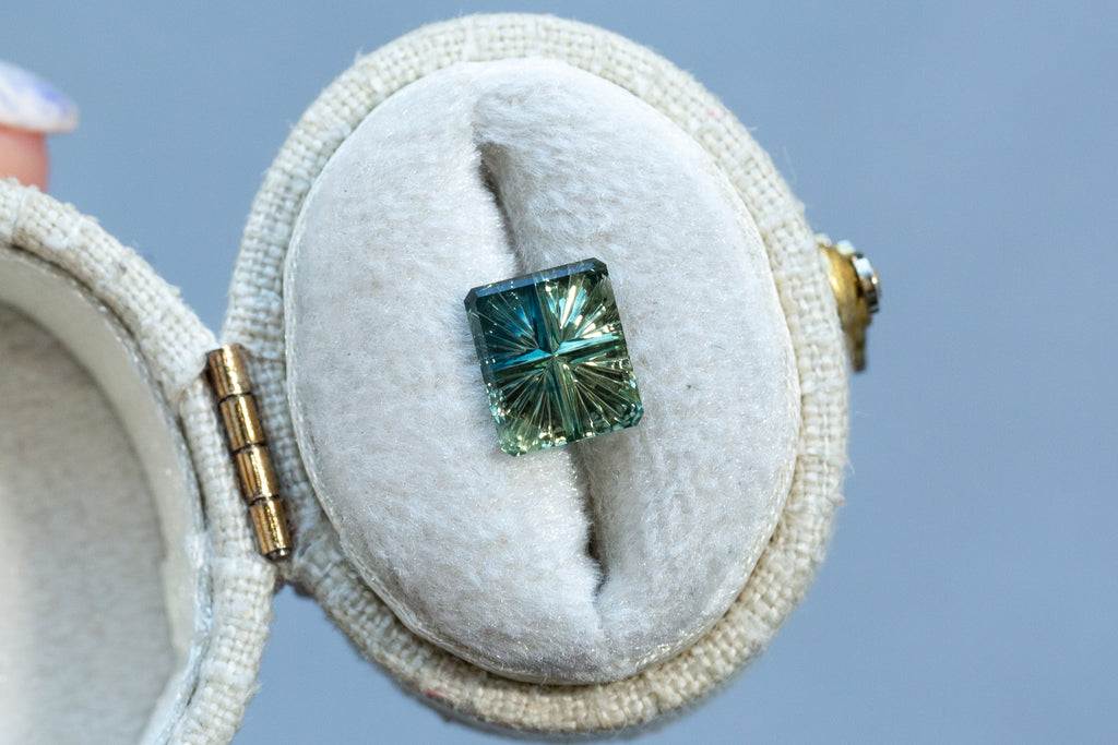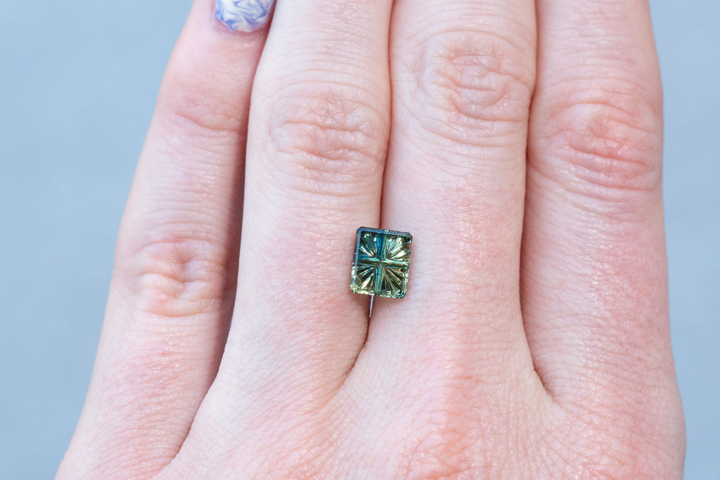 1.29ct Rectangle Teal Green and Yellow Parti Sapphire- Starbrite cut by John Dyer