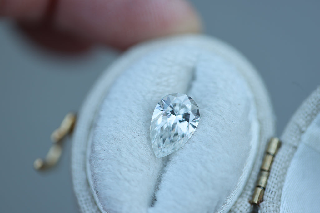 This absolutely beautiful pear lab diamond has the most gorgeous sparkle!