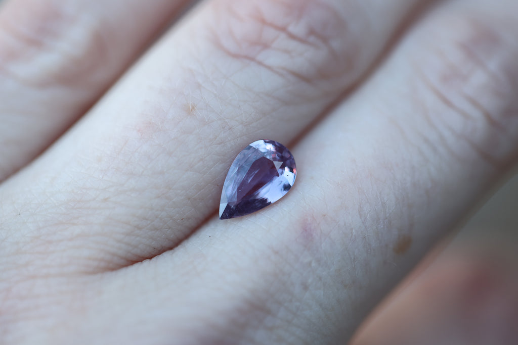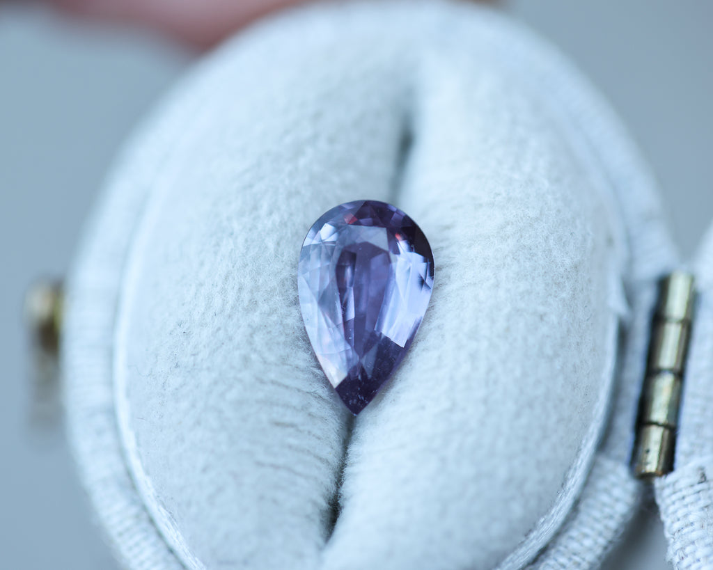 This gorgeous pear purple sapphire has the most beautiful coloring! Such a stunner!