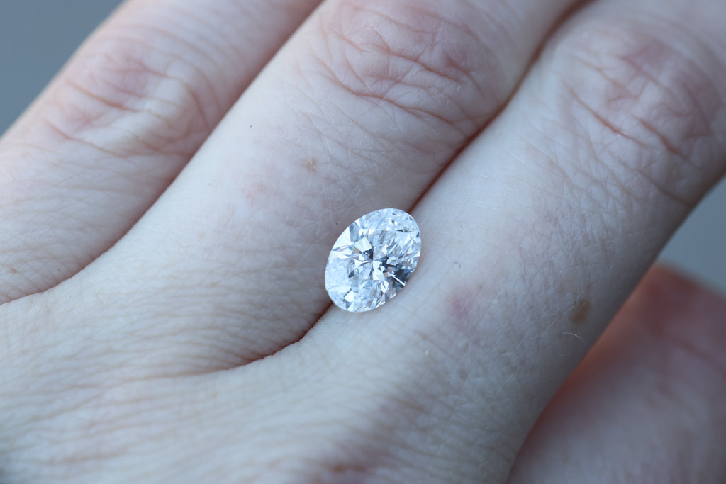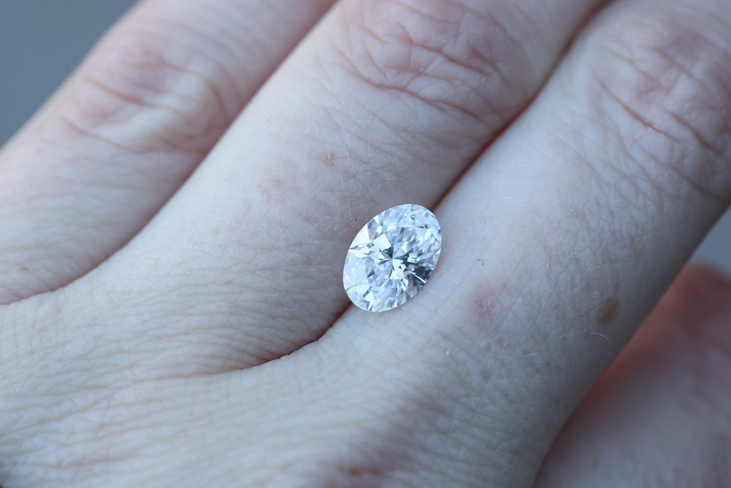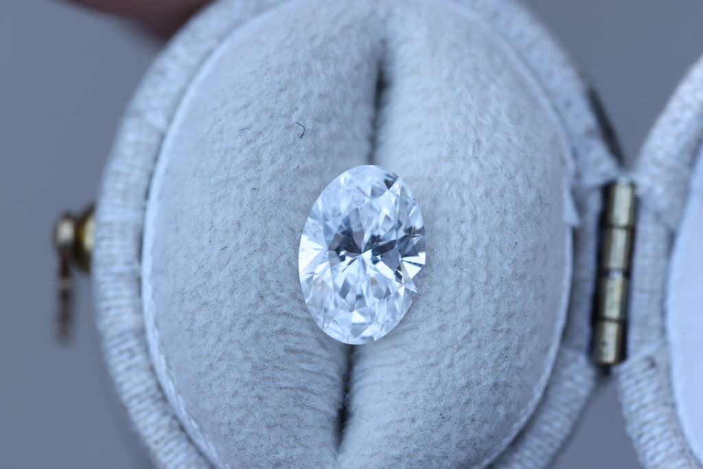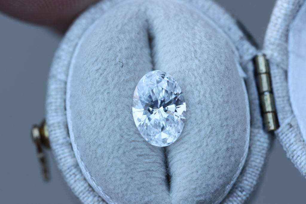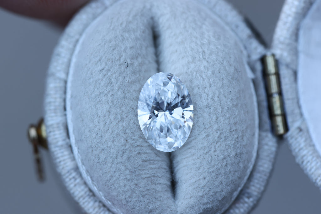 This stunning oval lab diamond is a beautiful bright D color with gorgeous sparkle!