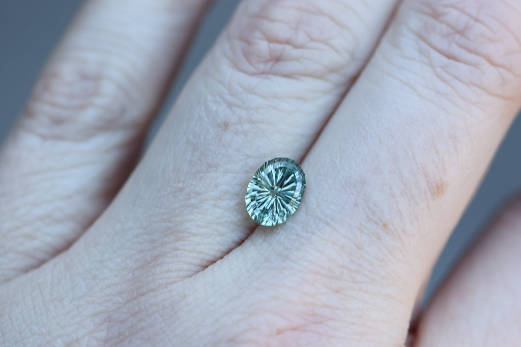 1.83ct oval blue green sapphire, Starbrite cut by John Dyer