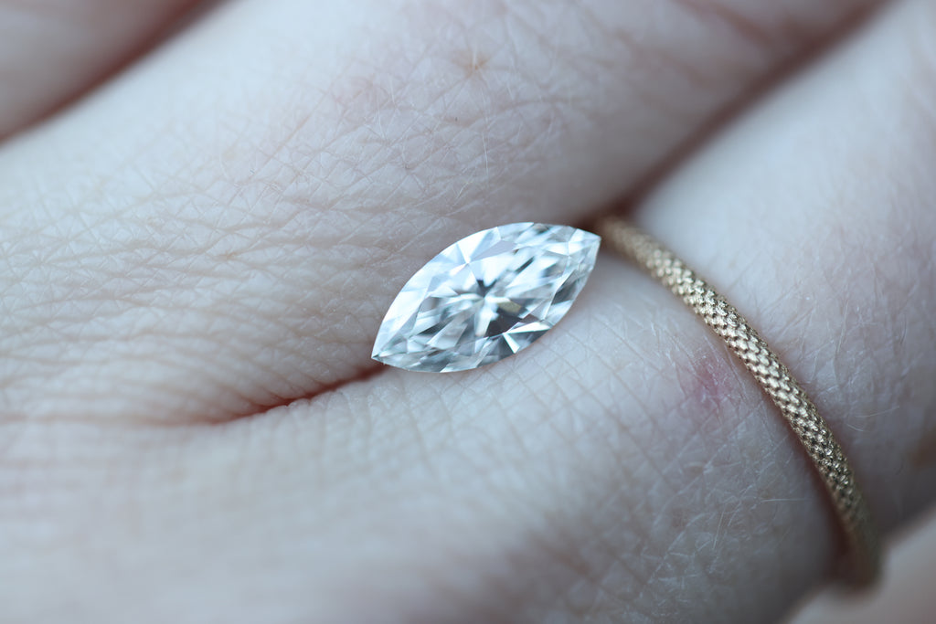 This beauty is a marquise lab diamond with gorgeous sparkle!