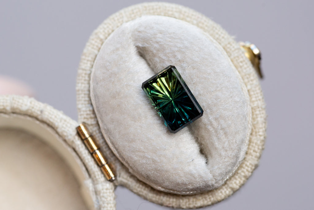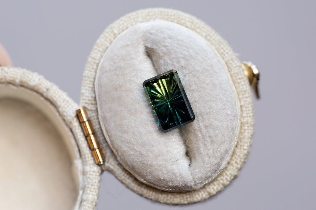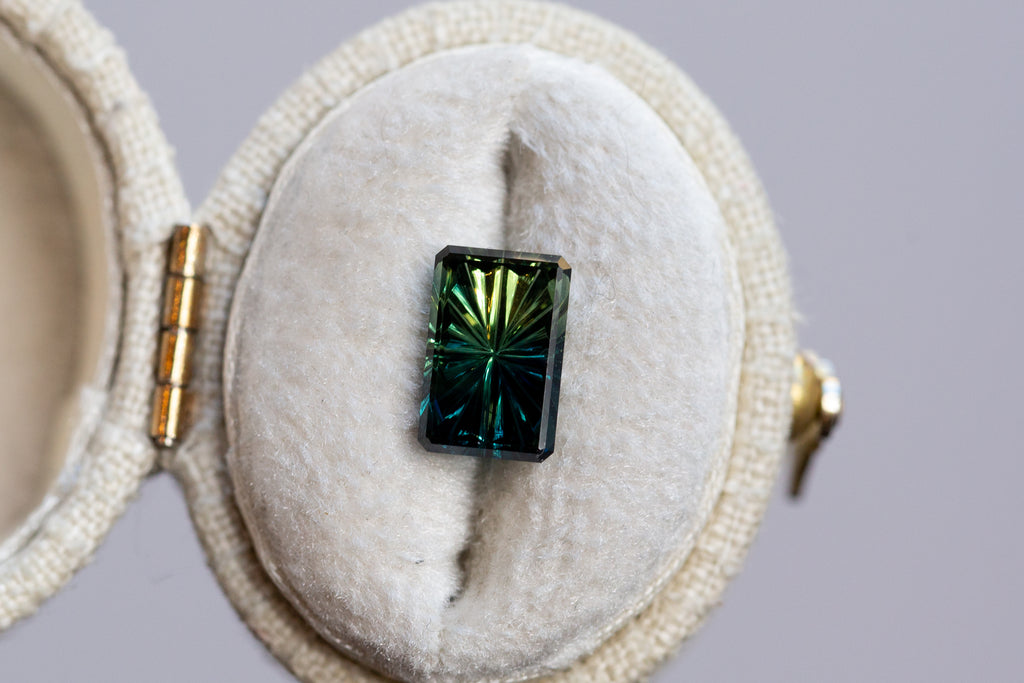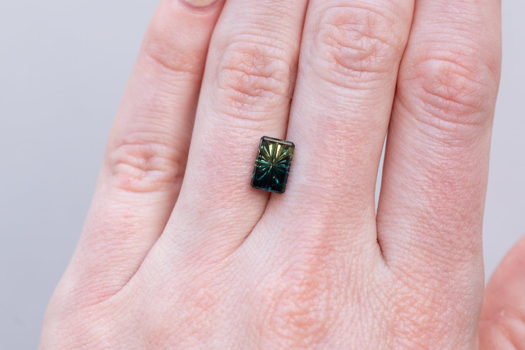 2.25ct Rectangle Blue and Yellow Sapphire- Starbrite cut by John Dyer