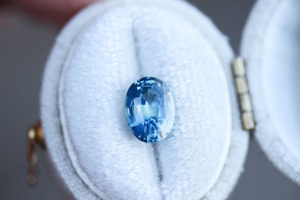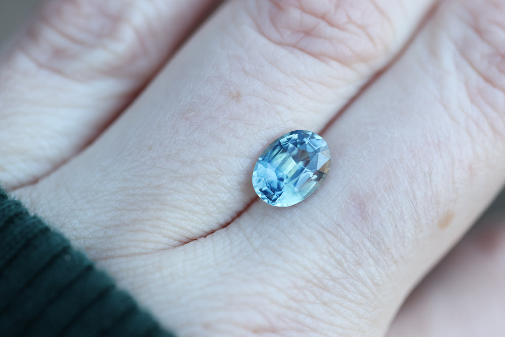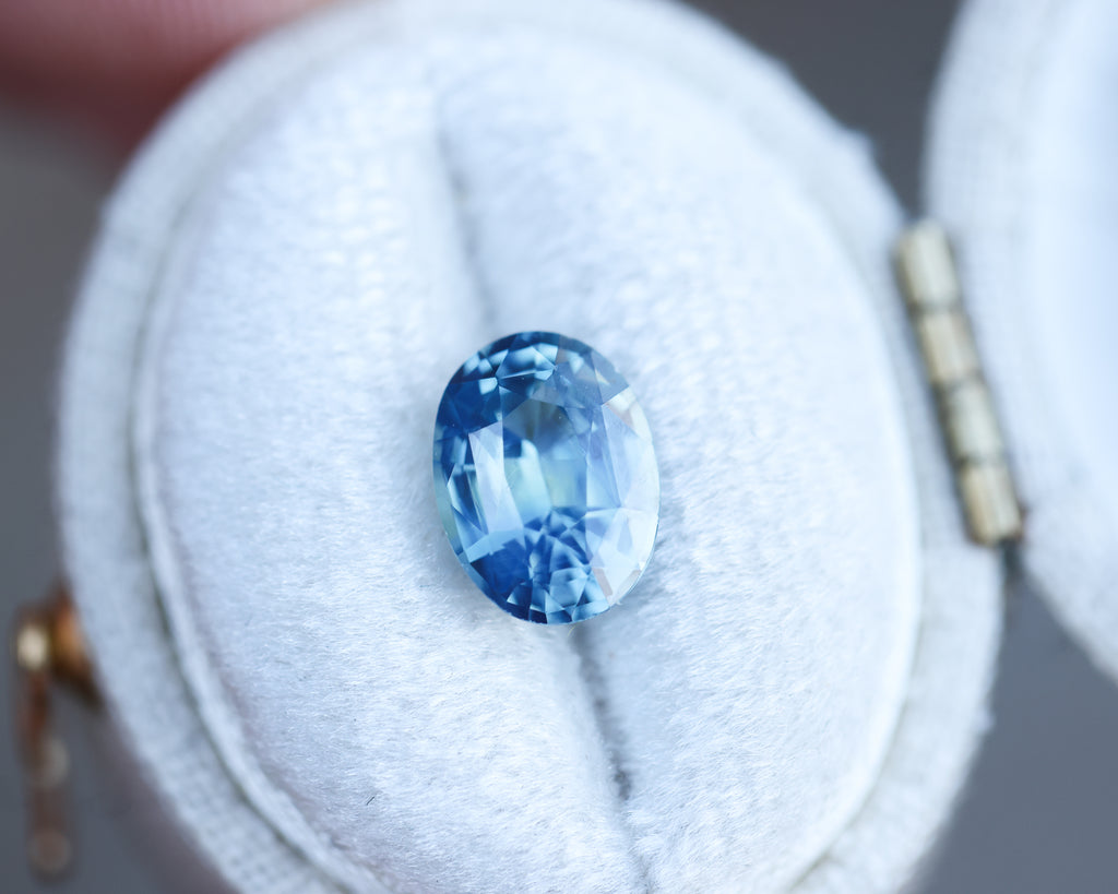 This gorgeous stone has just a bit of opalescence to it, and is a stunning blue color that also has a teal tint to it! One of my favorite stone's I've sourced to date!