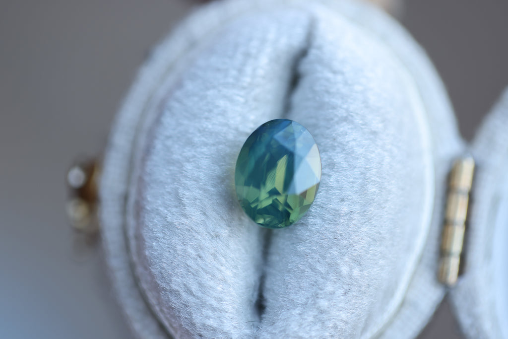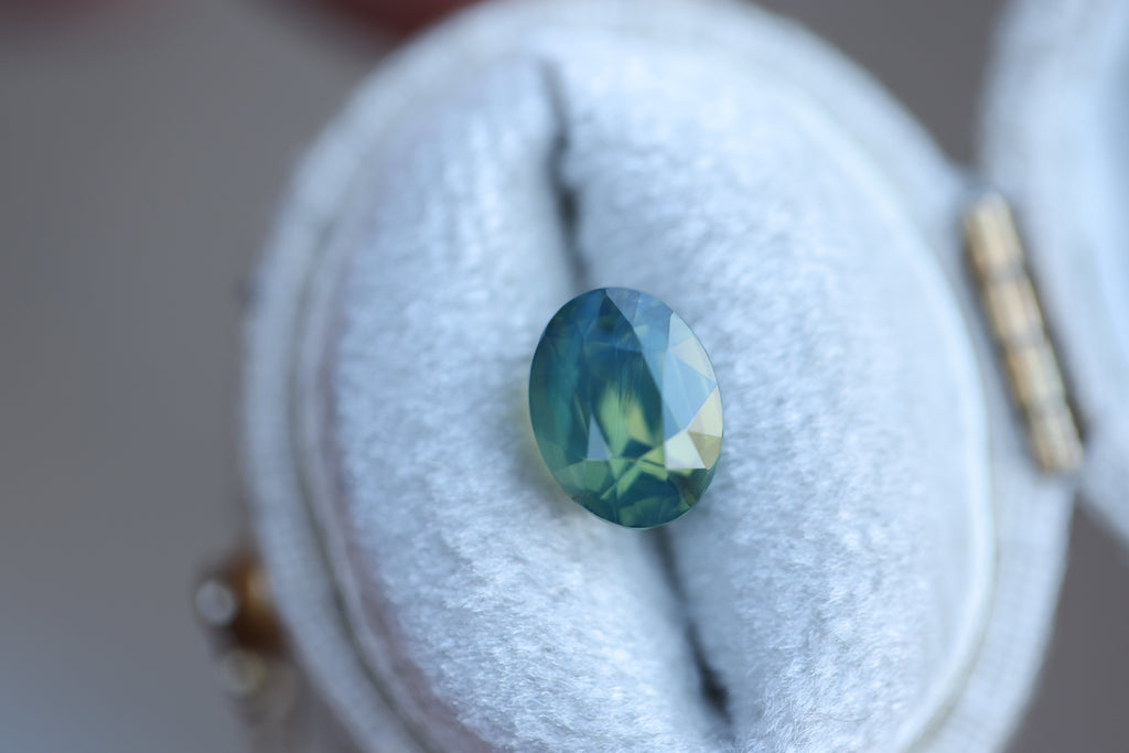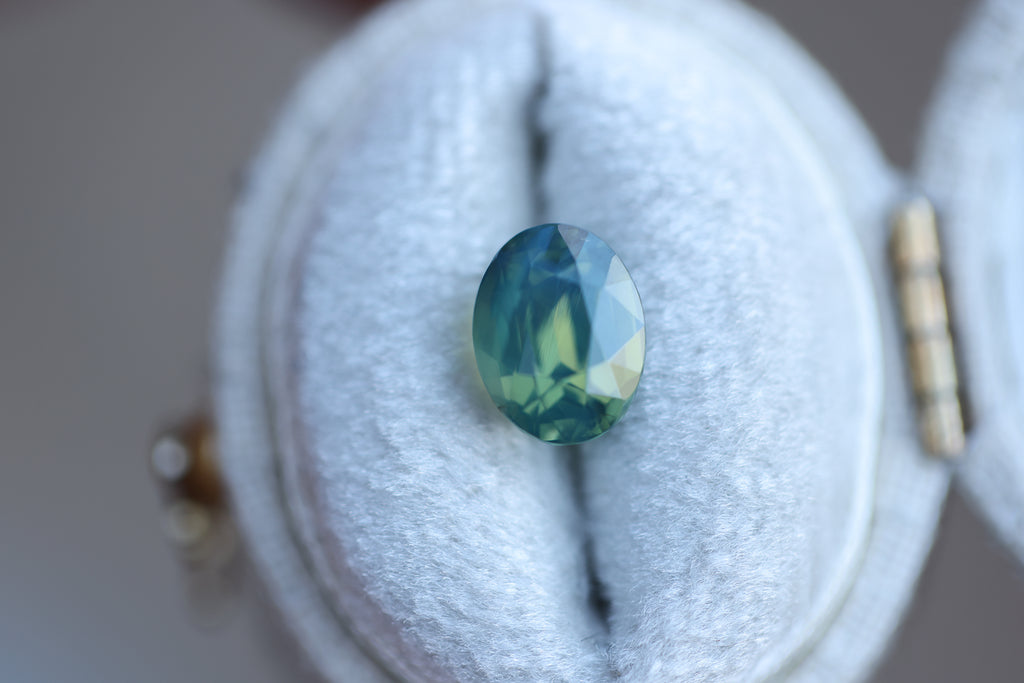 This absolutely gorgeous oval opalescent teal green sapphire has such an ethereal woodland vibe - just magical!