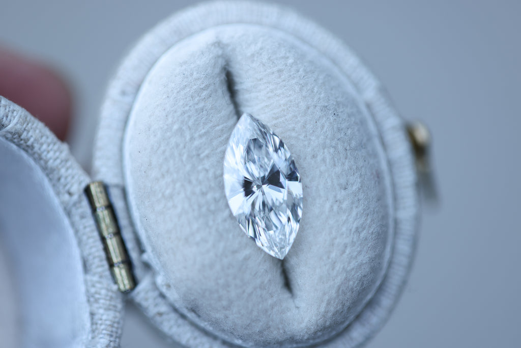 This absolutely stunning marquise lab diamond has the most incredible sparkle - just a beauty!