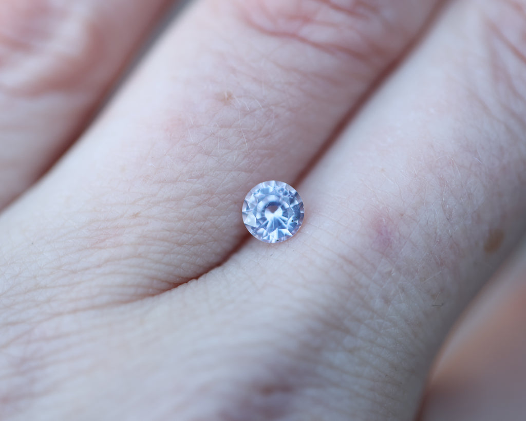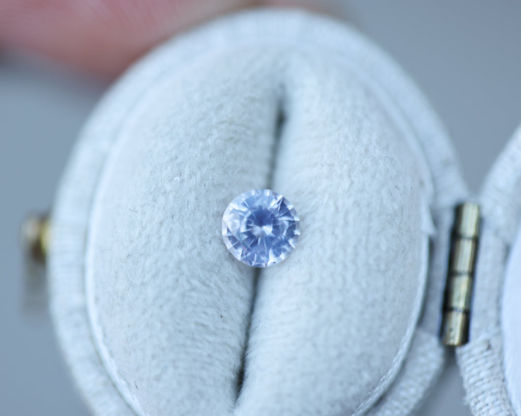 This gorgeous round sapphire is slightly opalescent with the prettiest icy pink lavender coloring!