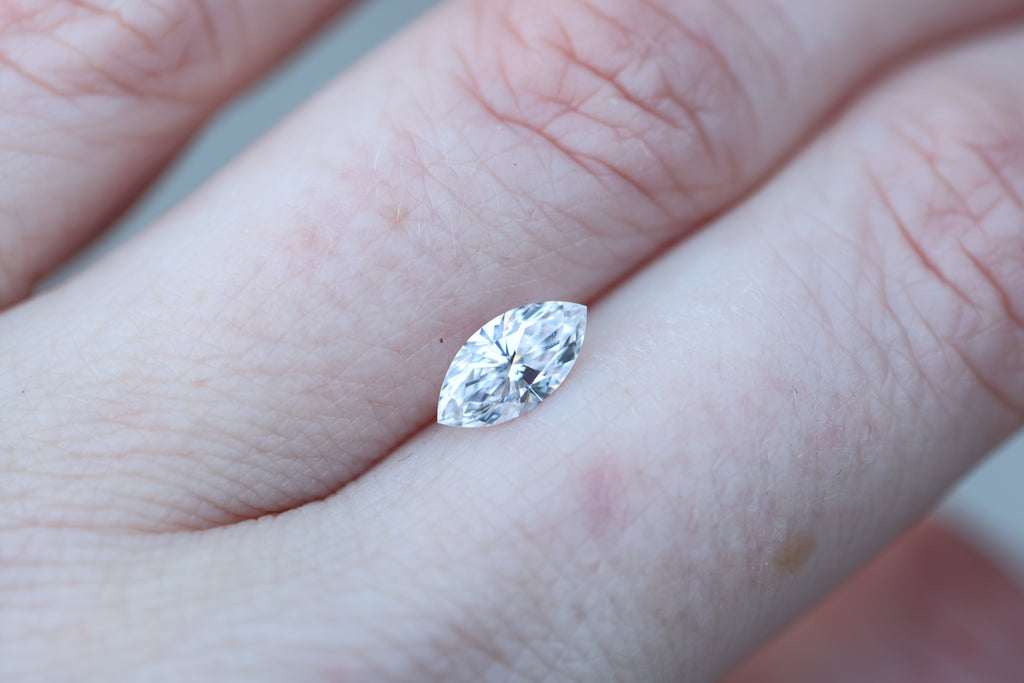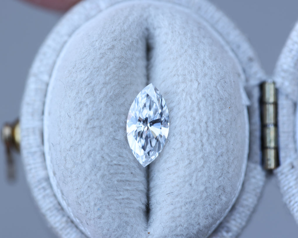 This beauty is a bright D color marquise lab diamond with the prettiest sparkle!