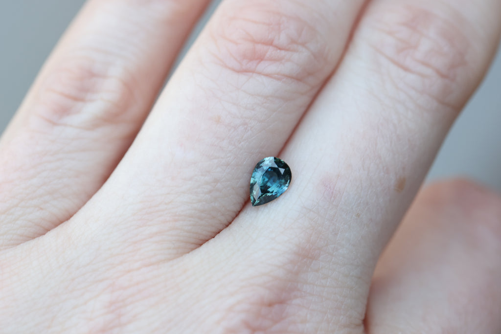 This gorgeous pear sapphire is just the prettiest blue green teal!