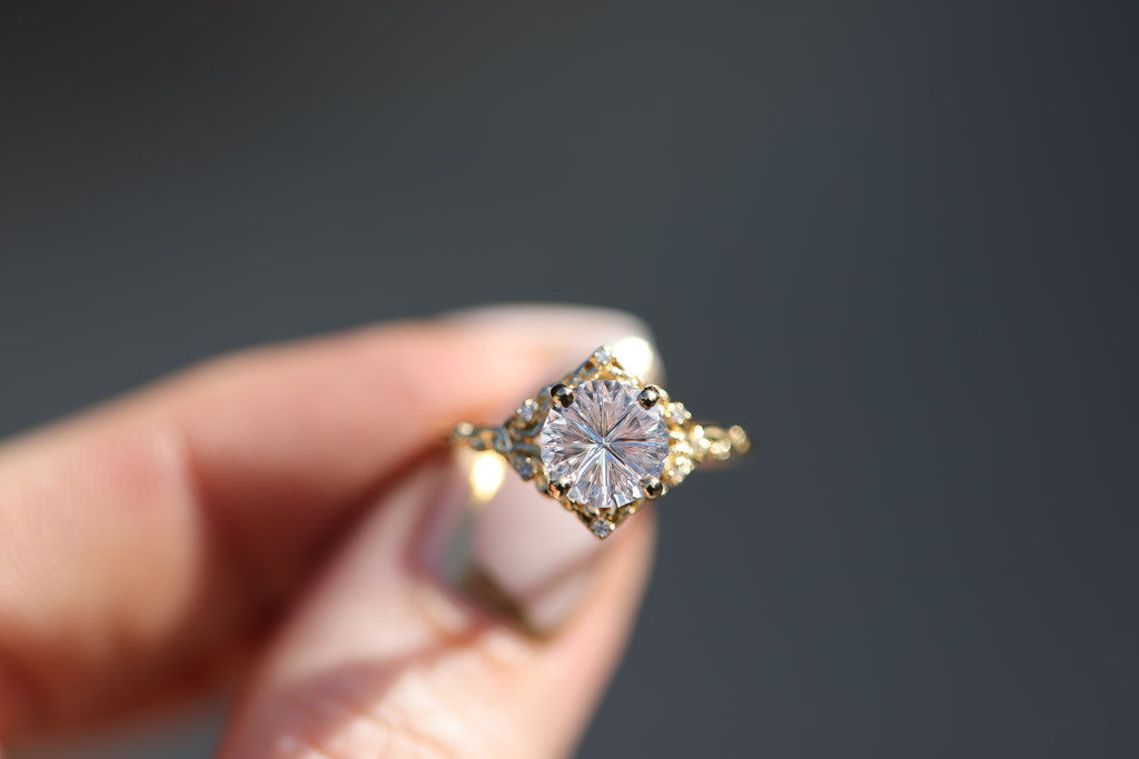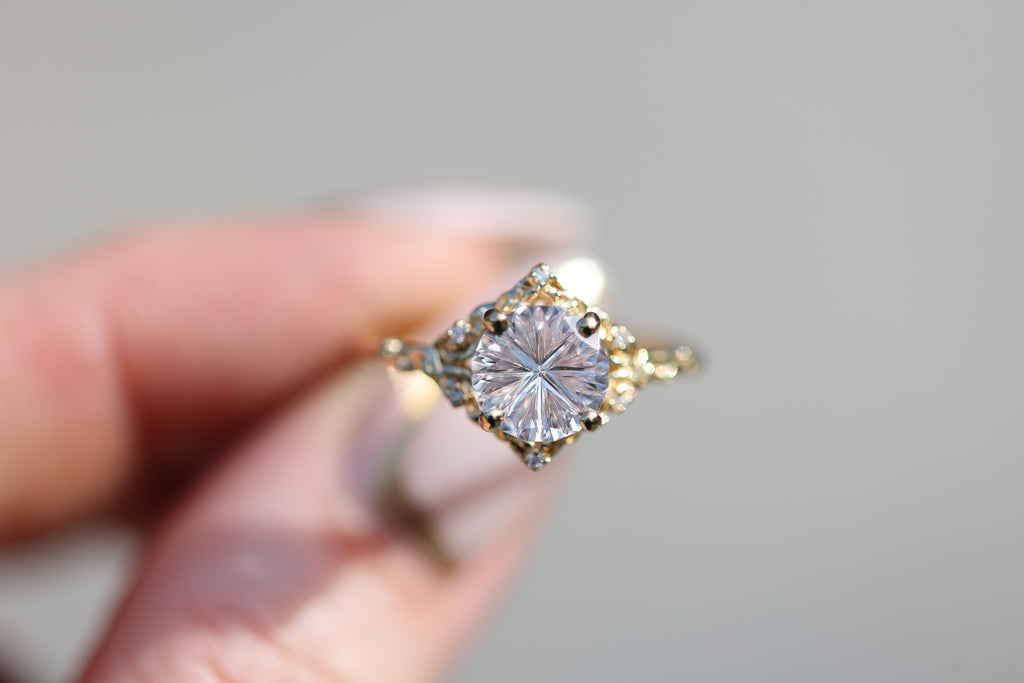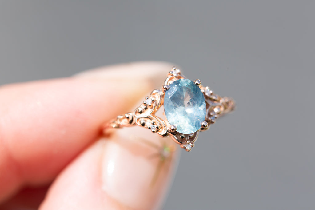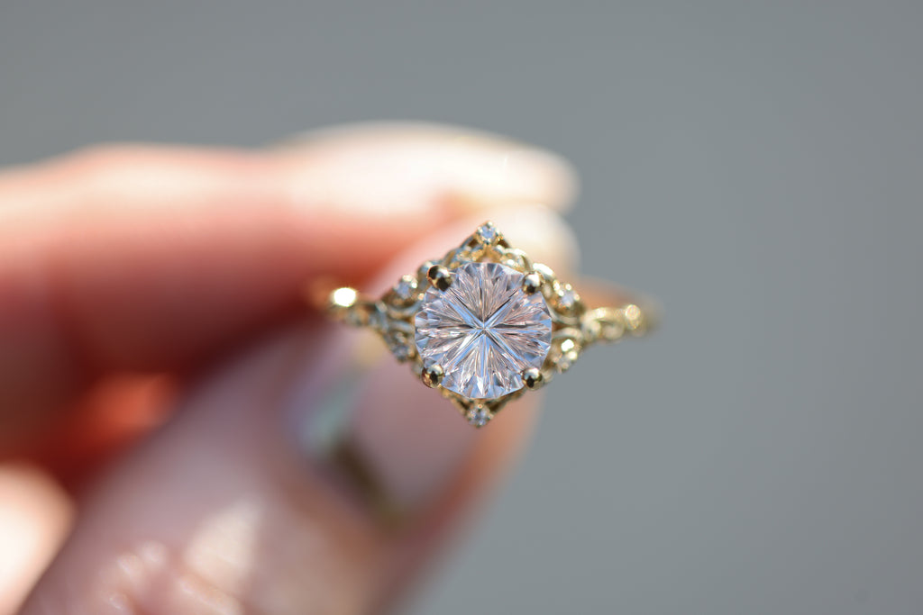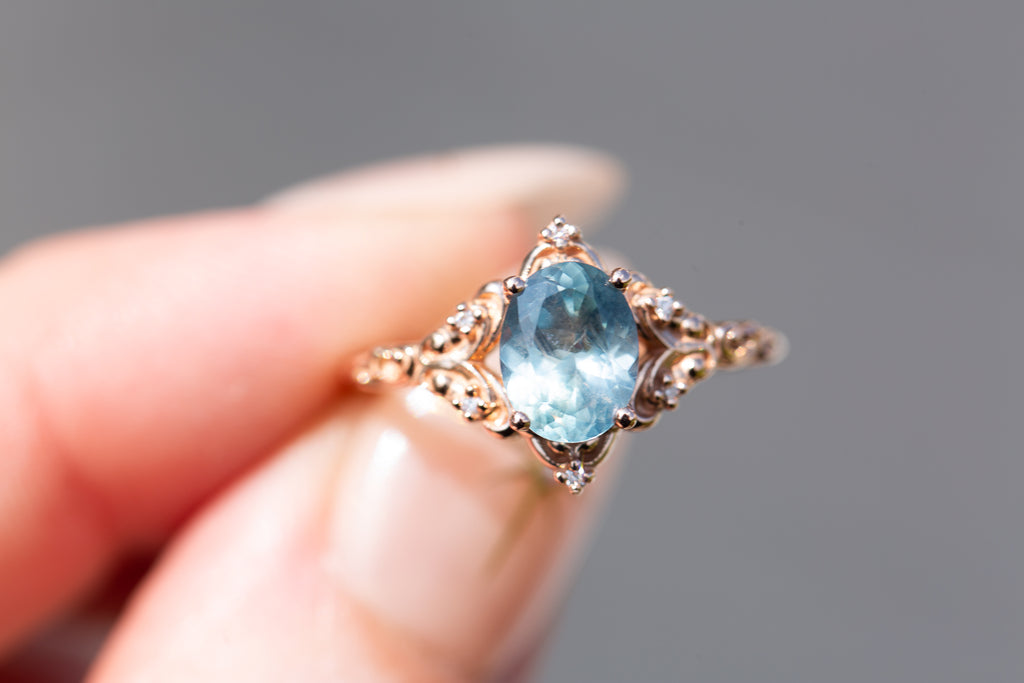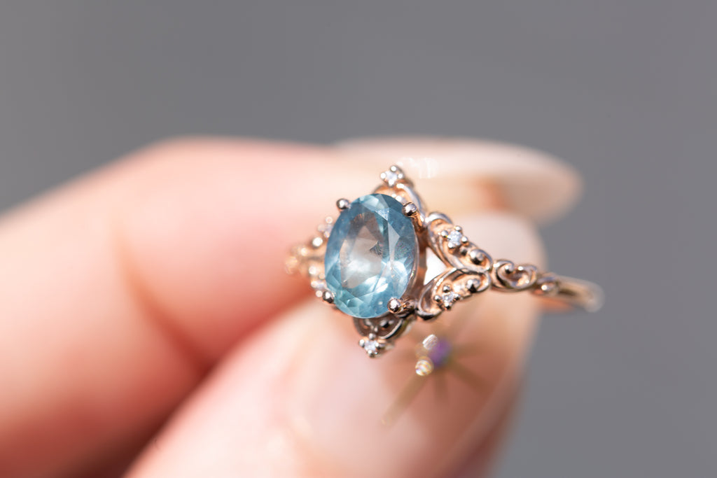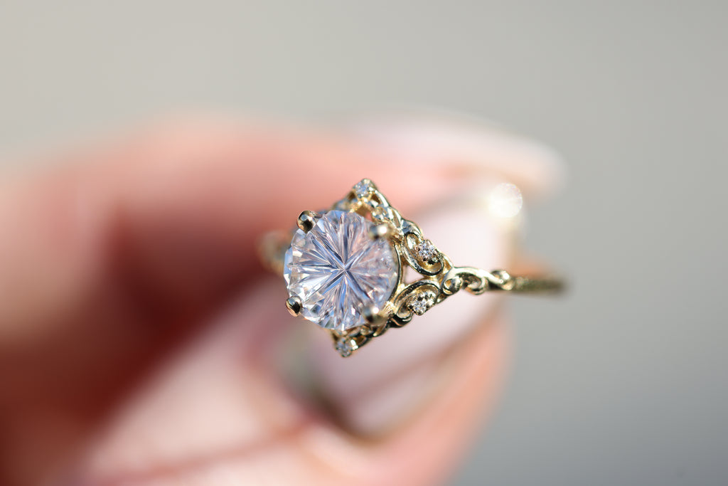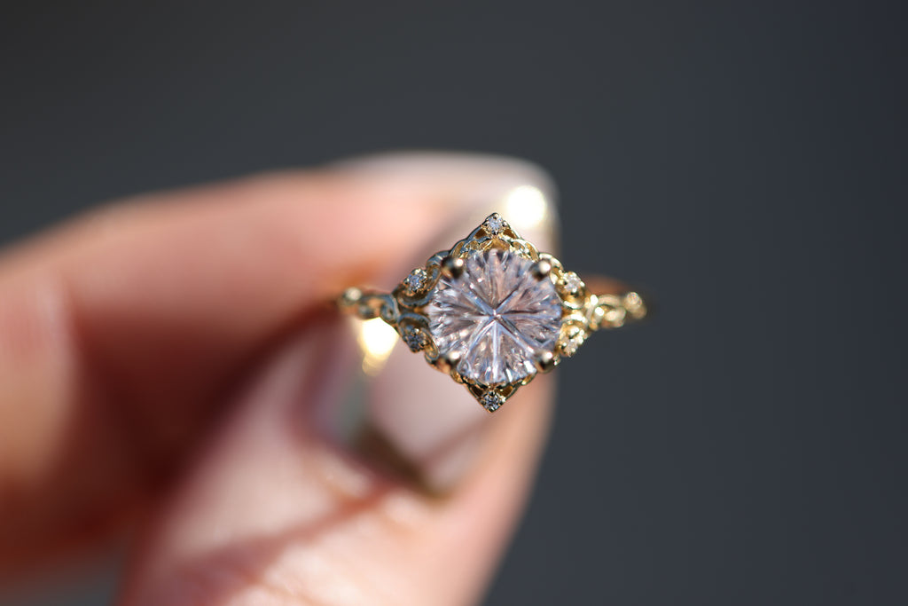 - The filigree swirls might change a little bit depending on the size/shape of the center stone. A longer stone (oval, marquise, pear) will have a larger dip while a round stone won't have as large as one!