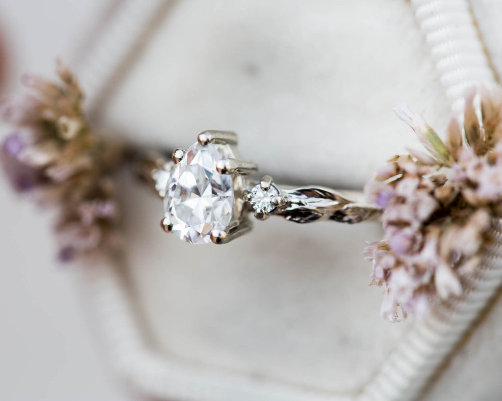 - Three leaves on each side of the side stones